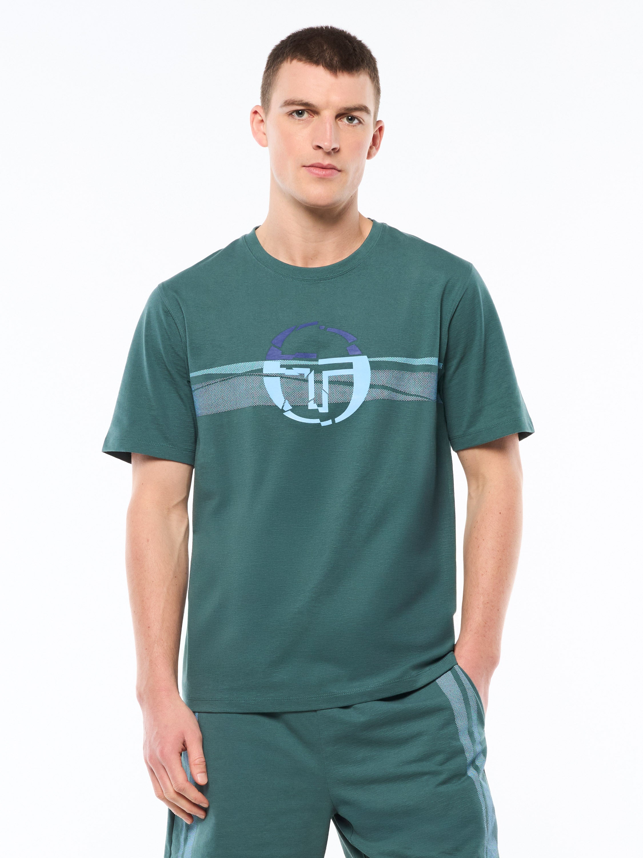 Elevate your everyday look with the Rotto Fashion T-Shirt, crafted in slub jersey for a refined yet casual texture. Featuring a reimagined Sergio Tacchini logo, it's a modern twist on a classic wardrobe essential—perfect for styling across both sport and lifestyle.