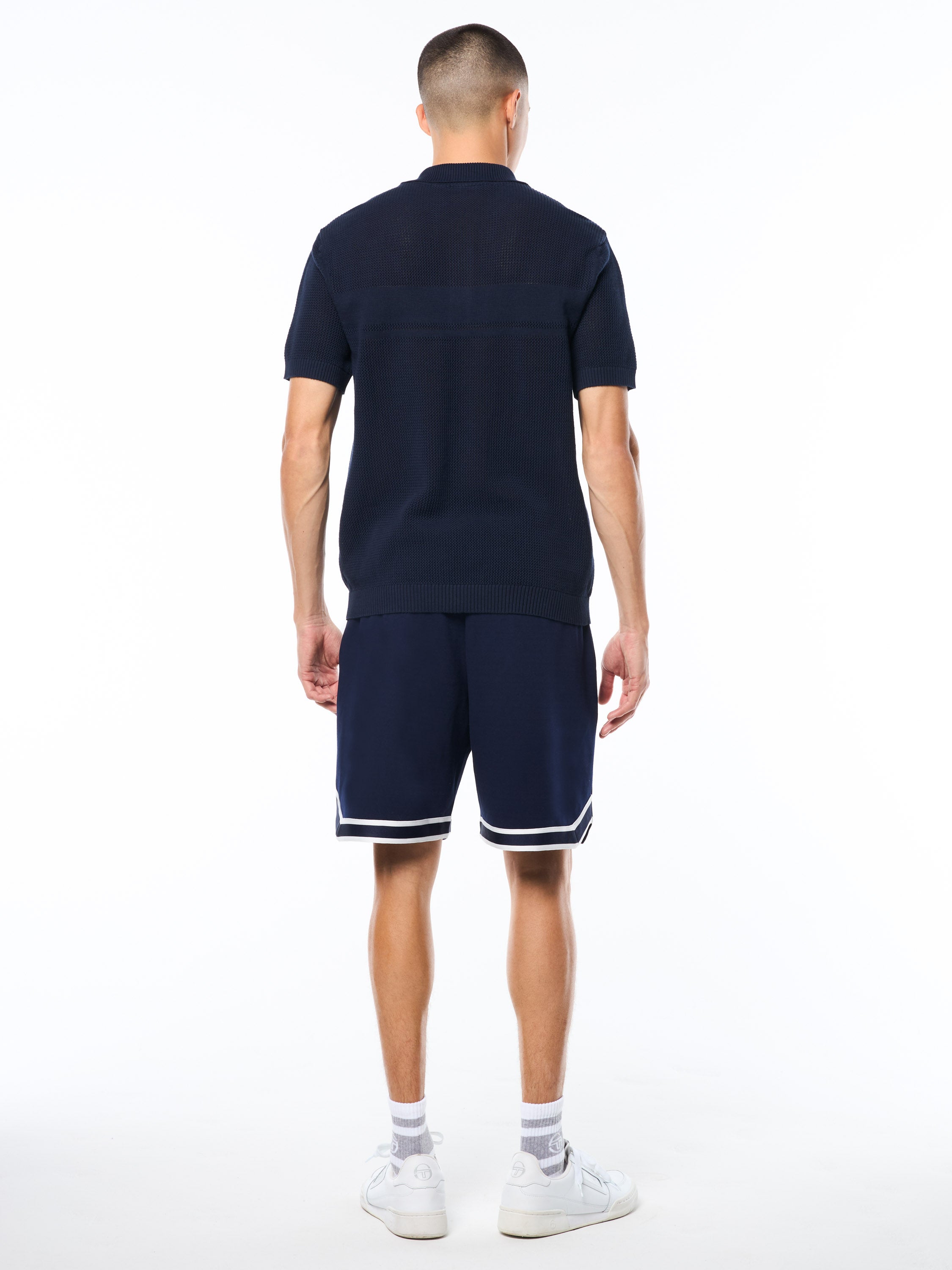 The Sabino Knit Polo is crafted from exceptionally soft cotton yarn in a drop needle knit construction for extra breathability, texture, and an elevated aesthetic. Designed with exquisite attention to detail, this premium polo is finished with our Damarindo lines design across the chest, and an embroidered 'ST' monogram logo. The Sabino Knit Polo is infused with understated luxury for the modern traveler, where sport meets style.