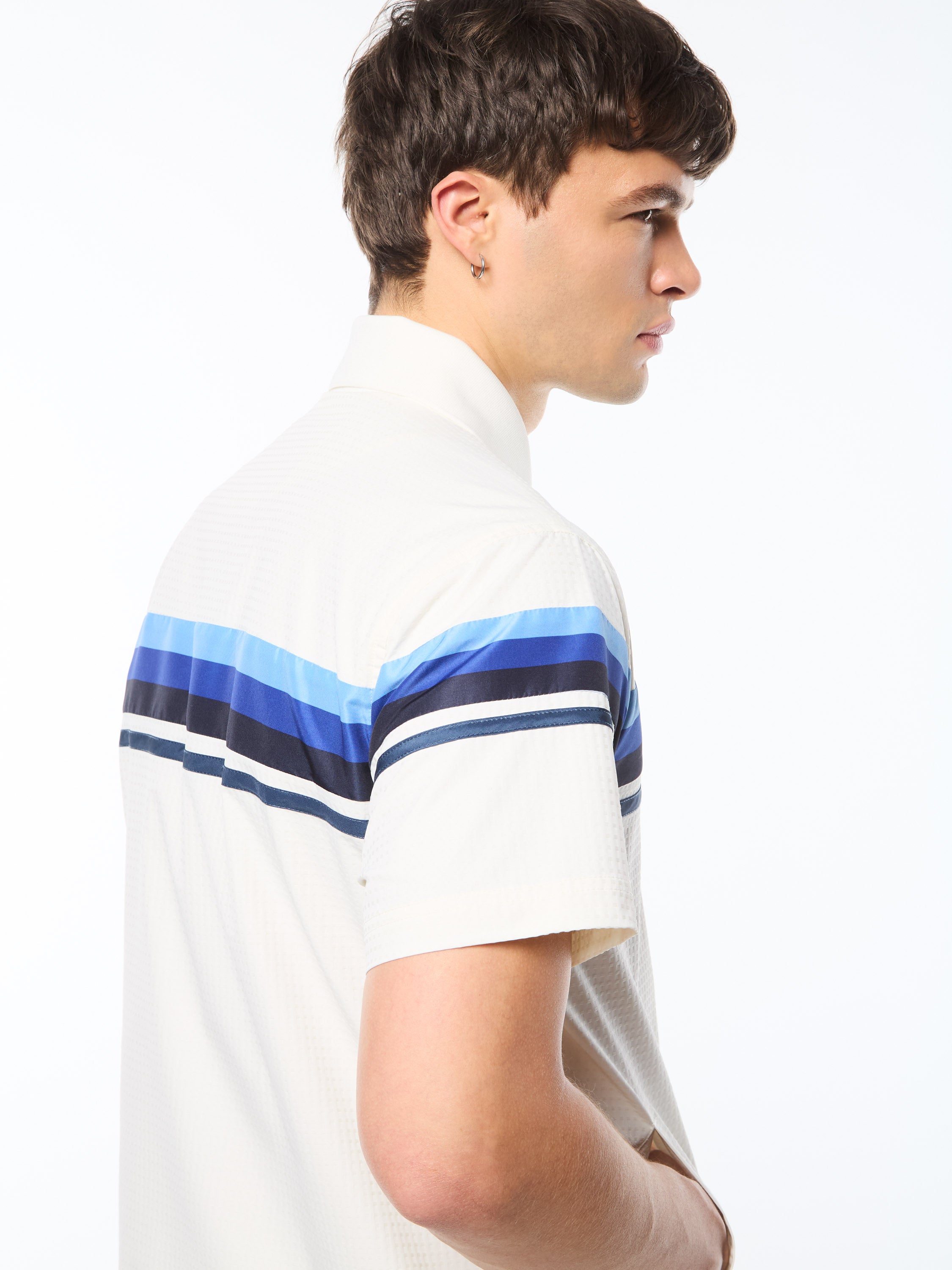 A fresh spin on classic sportswear, the Striscia Short Sleeve Track Jacket is crafted from our innovative swiss dot fabric. Featuring vibrant color lines detail across the chest, back and sleeves, the Striscia short sleeve track jacket is a perfect balance for performance and leisurewear for those who appreciate attention to detail.
