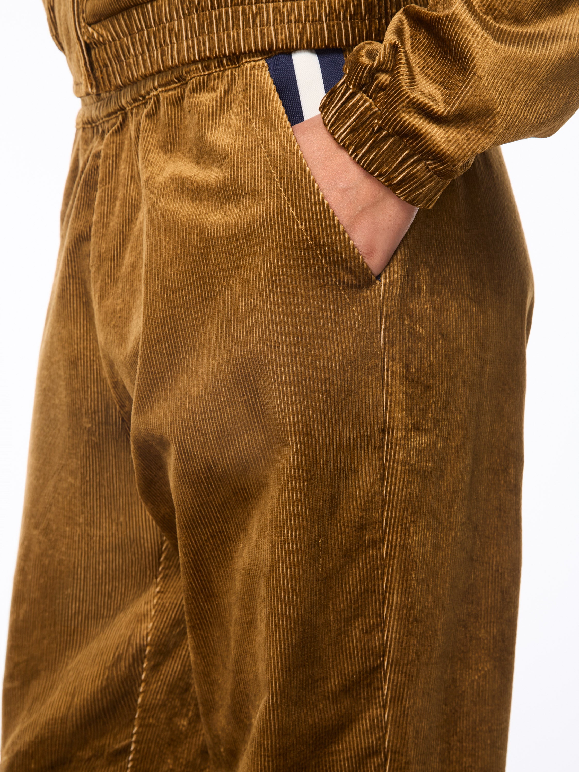 - Premium stretch corduroy track pant