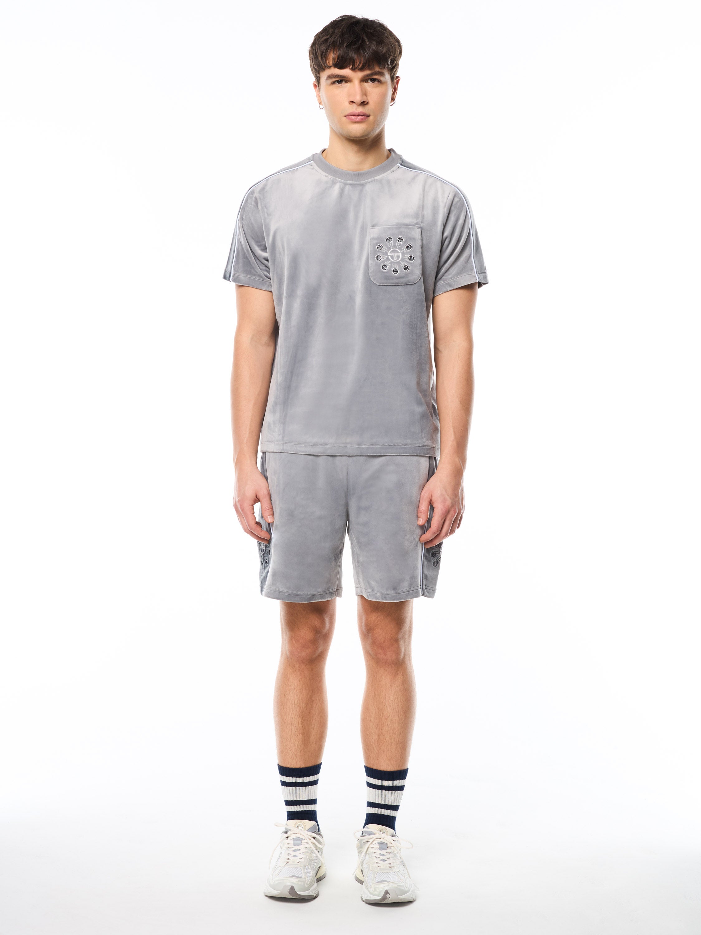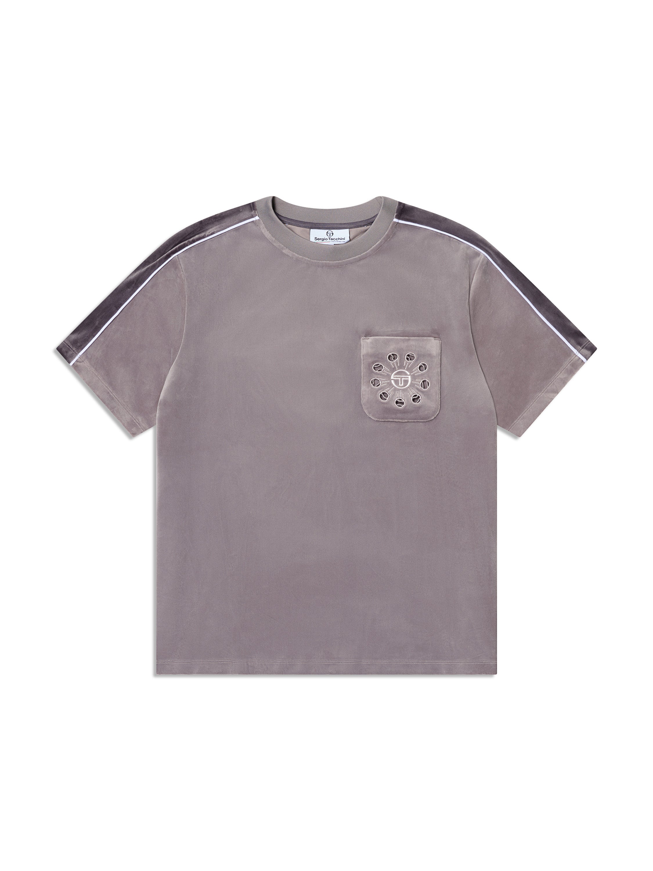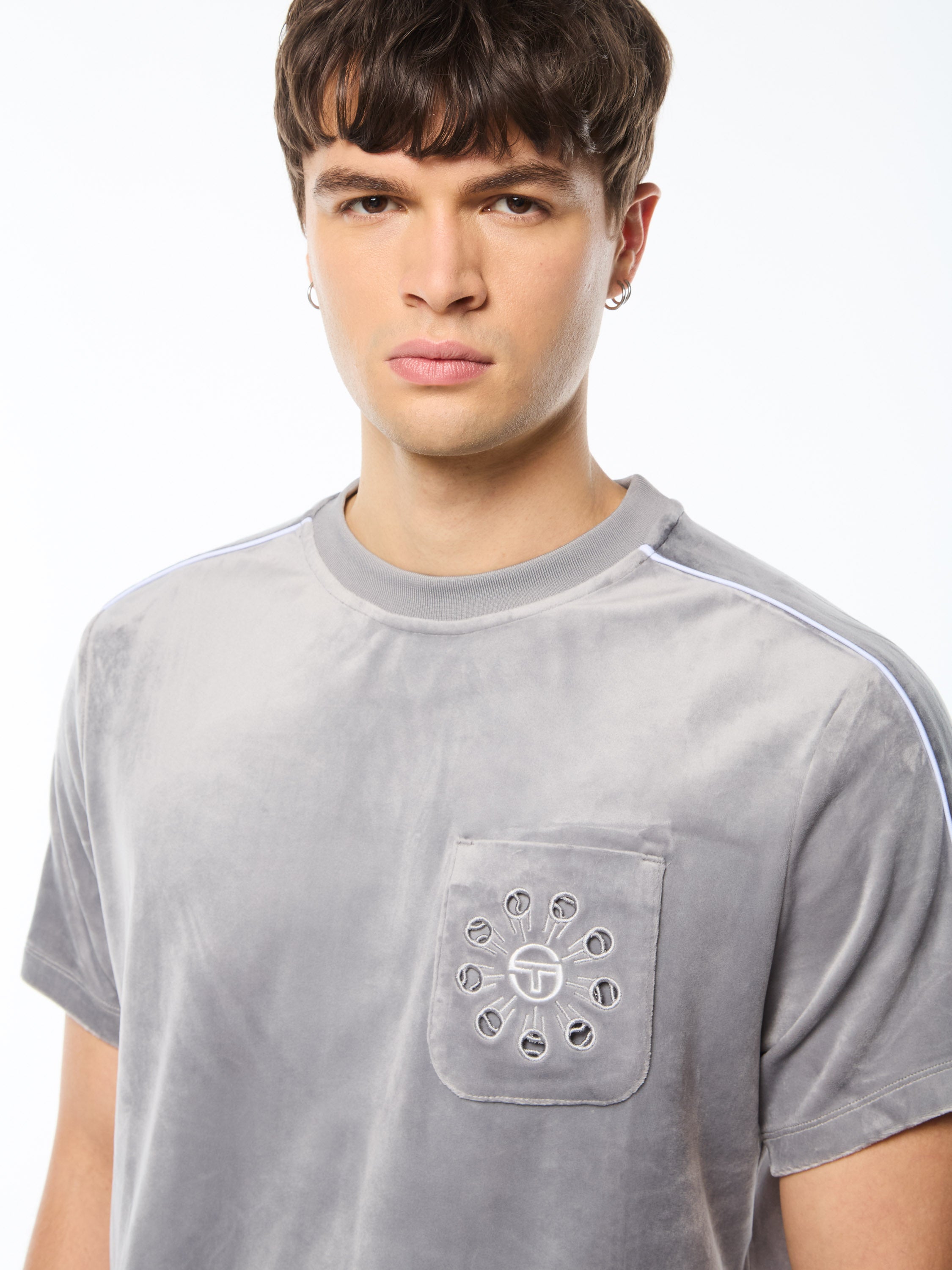 The Cresta Velour Pocket T-Shirt is crafted from soft, lightweight velour with added stretch for a premium feel and elevated comfort. Designed with a classic crew neckline and chest pocket detail, it's finished with subtle Sergio Tacchini branding for a clean sport-lifestyle look.