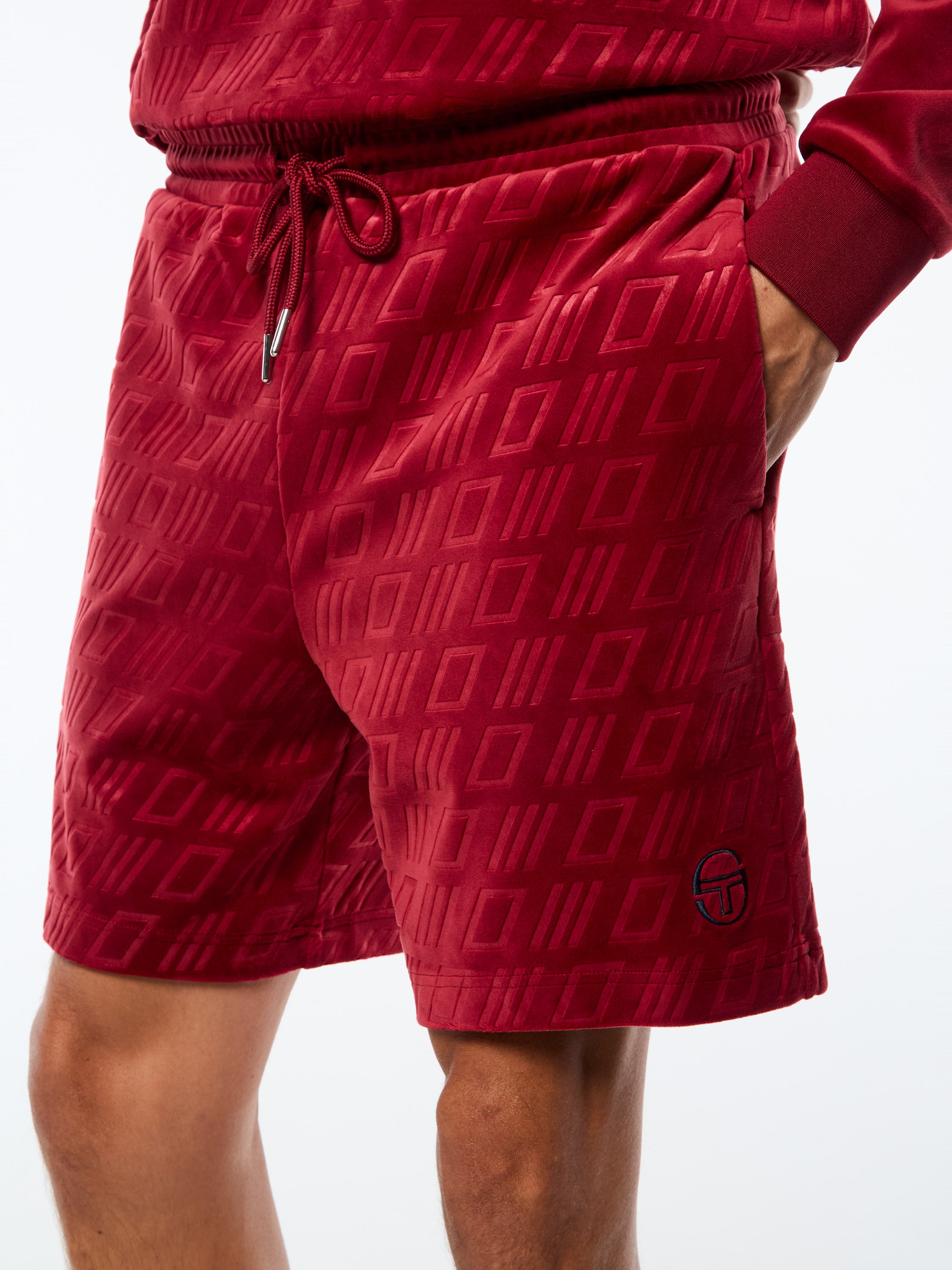 Luxe texture, standout detail. The Bandiera Debossed Velour Short is crafted from ultra-soft stretch velour with a debossed motif all over for a subtle hit of dimension. Finished with an 'ST' embroidered monogram logo at left hem, this elevated short fuses retro athletic heritage with modern polish.