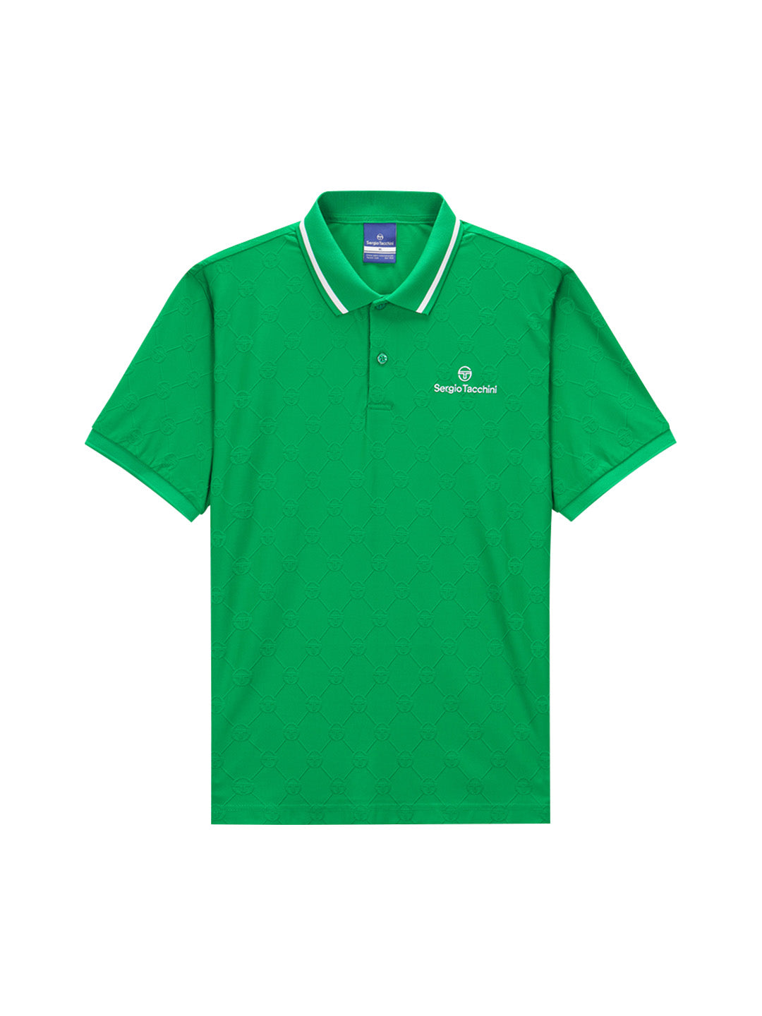 The Daily Monogram Polo Shirt is artfully crafted with a luxurious all-over 'ST' monogram motif in raised jacquard. An elevated take on classic sportswear, this soft-touch polo is complete with a tipping stripe at the rib-knit collar and an embroidered Sergio Tacchini logo at the left chest.