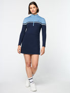 A tennis classic for contemporary times, our color-blocked Istrana Dress is crafted from buttery-soft 4-way stretch fabric that's made to move with you through your workout to your everyday. Designed with a water-repellent aqua-guard zip placket at the front for easy venting, this fitted long sleeve dress includes supportive undershorts with ball & phone pockets for convenience on the court & beyond.