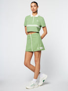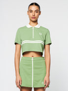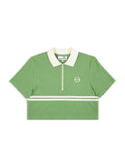 A for-her spin on a classic Tacchini silhouette, our Miss Supermac Polo is crafted from breathable piqué cotton and features double stripe taping across the chest. Topped with a soft rib-knit collar and zip placket, this cropped polo is complete with an embroidered 'ST' monogram logo at the left chest.Pair with the Miss Supermac Skirt for the full fit. (Sold separately)