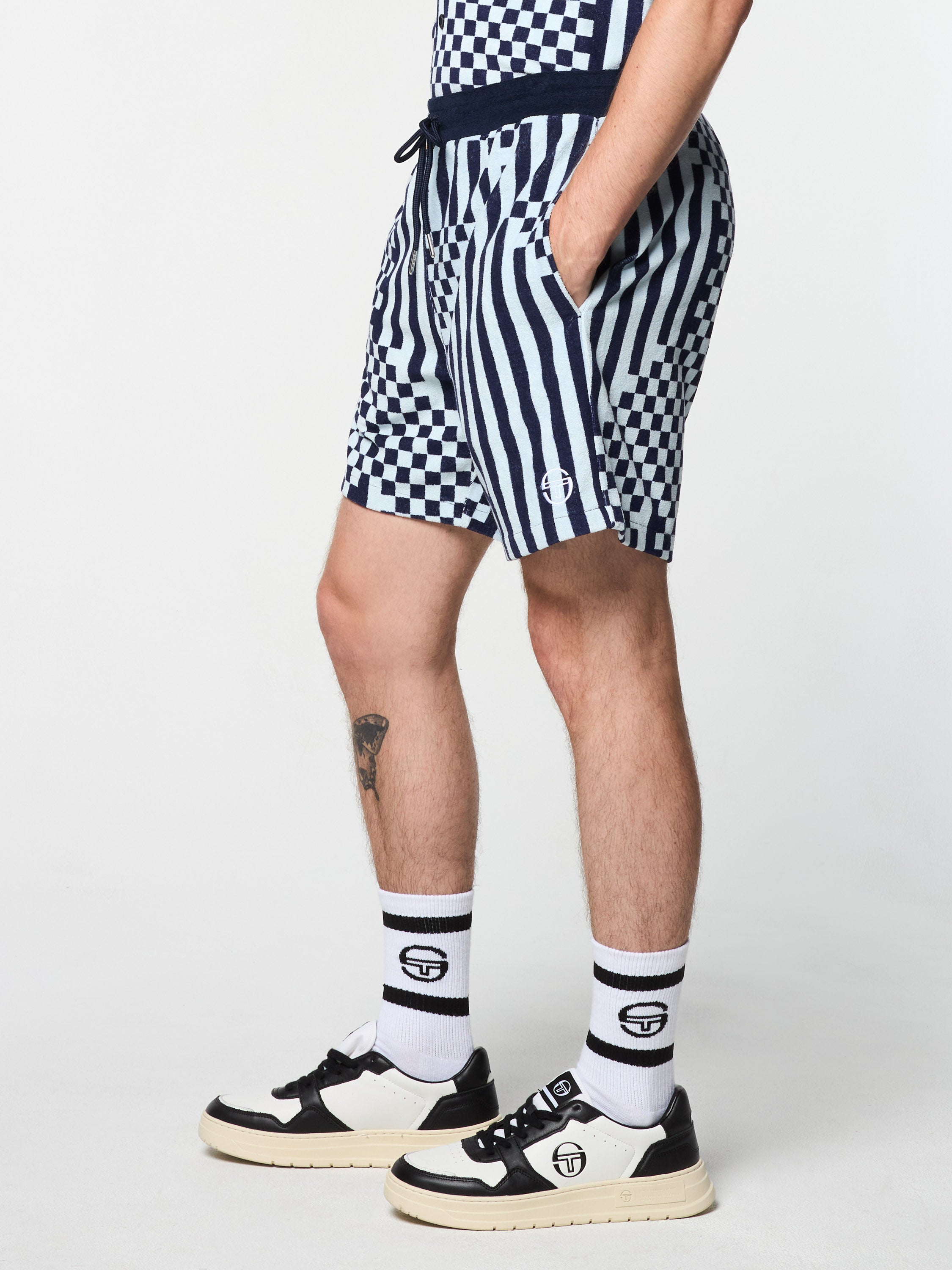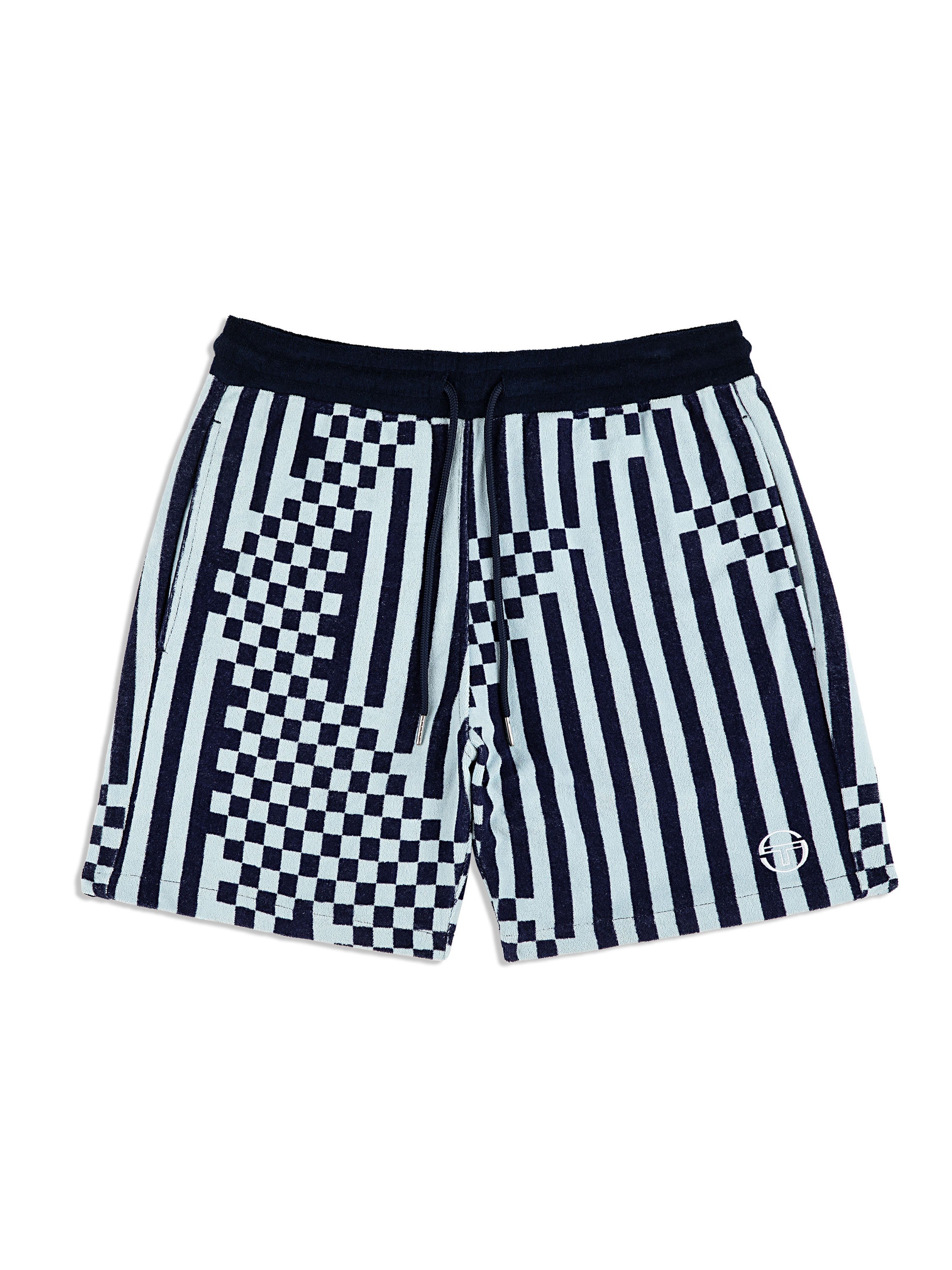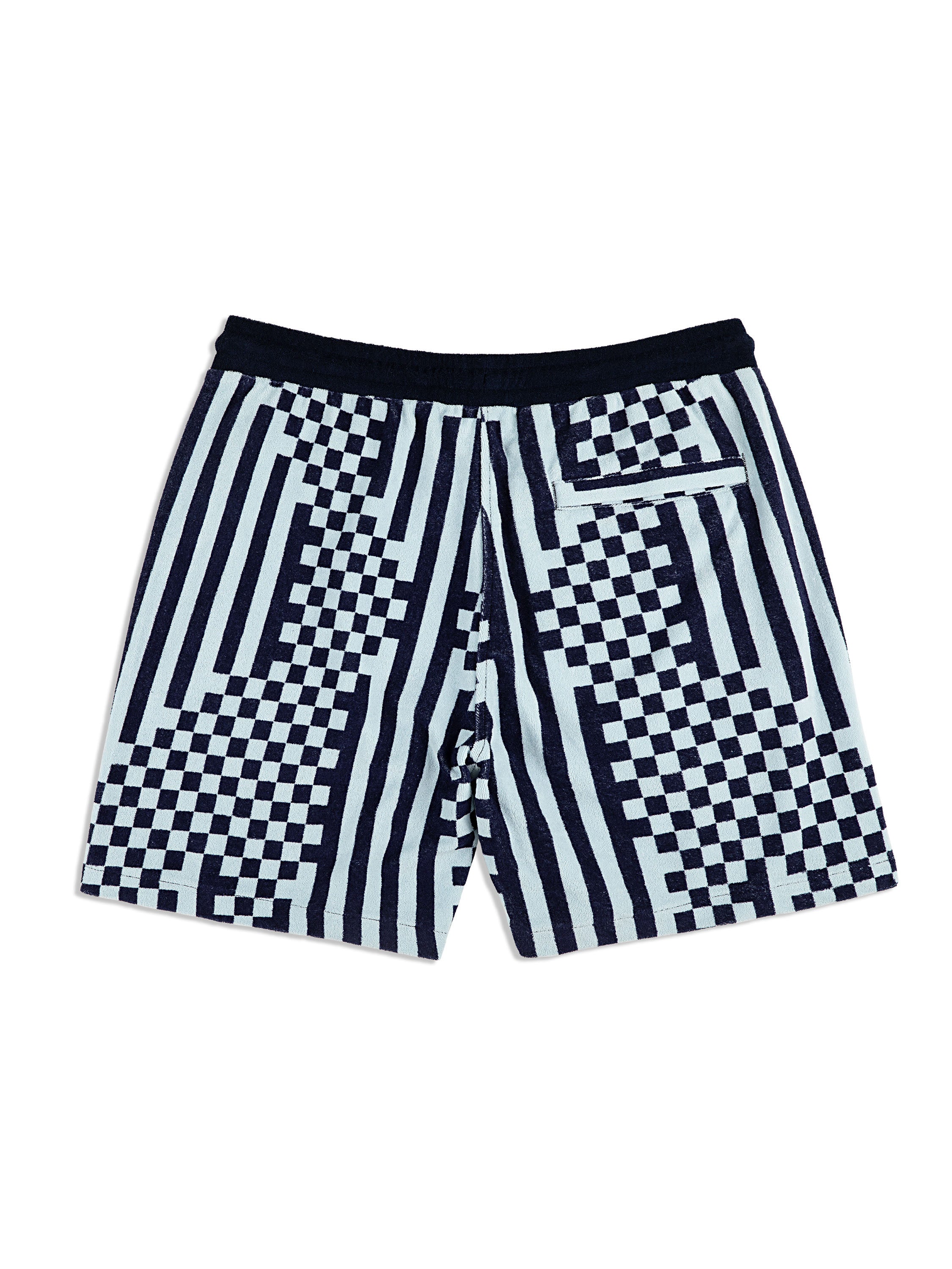 Elevate your wardrobe with our premium Piastrella Terry Cabana Short. A nod to luxury resort loungewear, these super comfy shorts are crafted from plush terry toweling and feature a retro two-tone geometric all-over pattern.Pair with the Piastrella Terry Cabana Shirt for the full fit. (Sold separately)