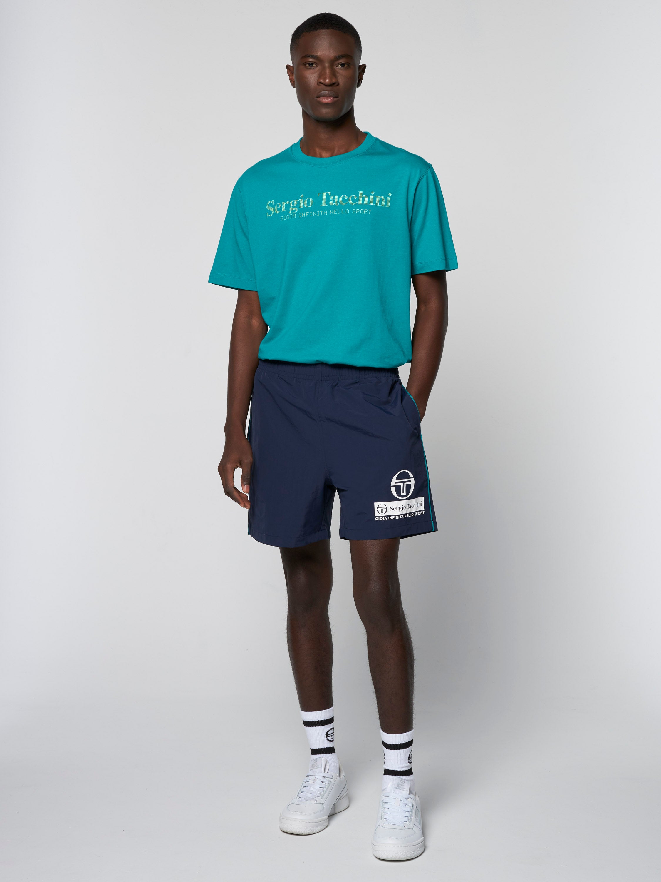The Viva Nylon Short is made of lightweight, water-resistant Taslan nylon and features contrast piping down the side legs for a retro vibe. Topped with a comfortable elastic waistband, these wear-everywhere shorts are complete with a Sergio Tacchini logo and sports-inspired Italian slogan at the left hem as a nod to the brand's heritage.