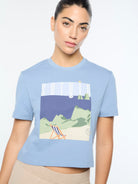 Keep it chill in our Women's Tosca T-Shirt. Crafted from pure cotton, this cropped tee features custom artwork inspired by vintage Mediterranean travel posters for a laidback vibe.