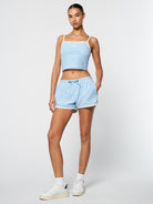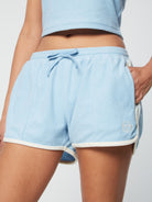 Cozy up in our super-comfy Laura High Waist Short, crafted from incredibly soft terry fabric that's perfect for lounging at home or wearing out. Topped with a drawstring elastic waist, these do-it-all shorts are finished with spacious pockets, an embroidered 'ST' monogram, contrast binding accents, and a retro rounded dolphin hem.Pair with the Florence Tank for the full fit. (Sold separately)