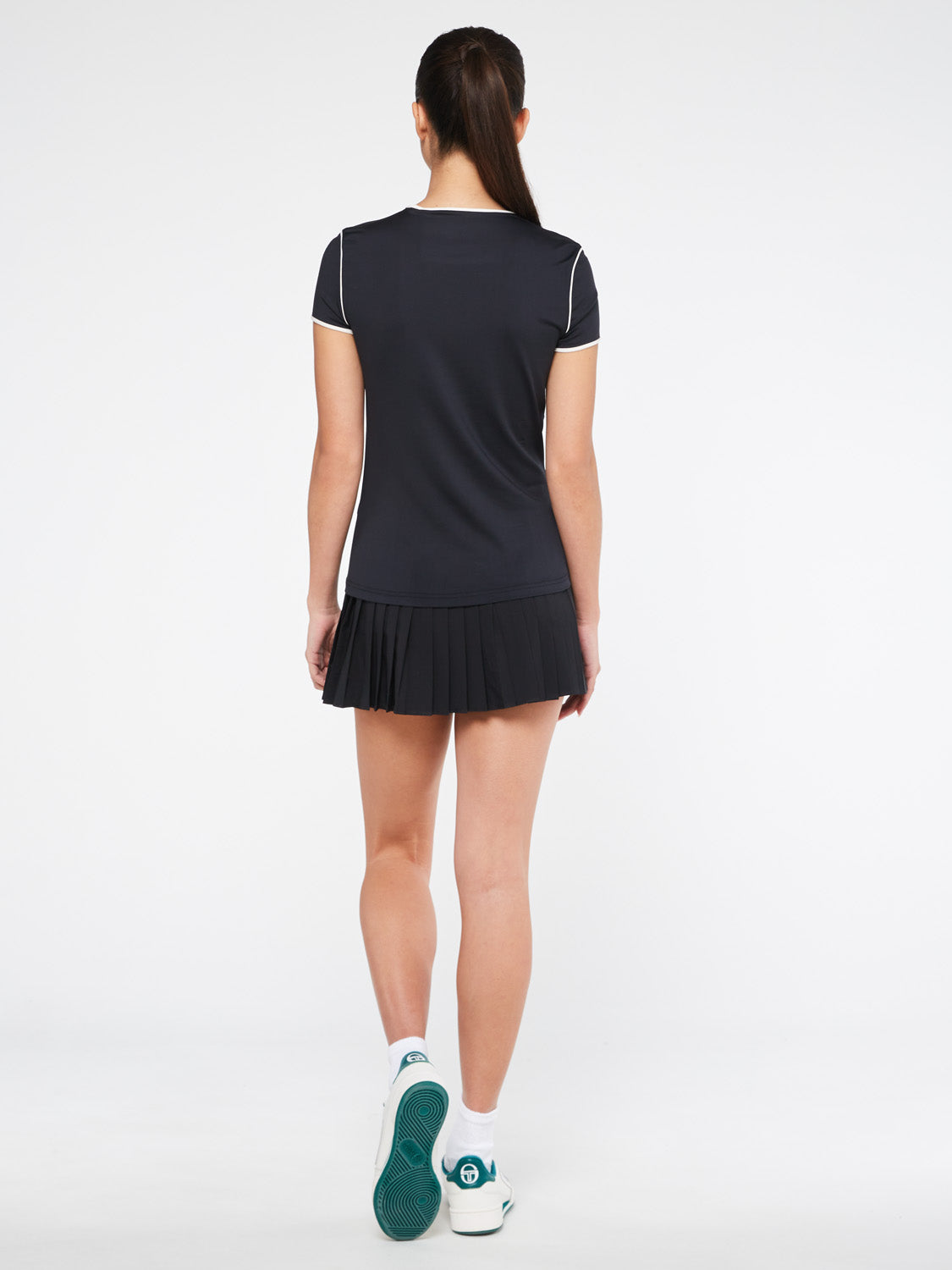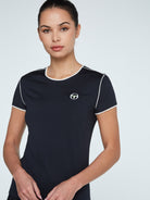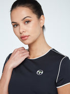 The Women's TCP T-Shirt is made of eco-friendly quick-dry fabric with a subtle stretch to keep you cool and moving freely through any workout. Cut in a form-fit silhouette, this streamlined tee features Sergio Tacchini's iconic ‘ST' monogram logo in a two-color embroidery at the left chest, while contrast piping and binding details offer a vintage vibe.