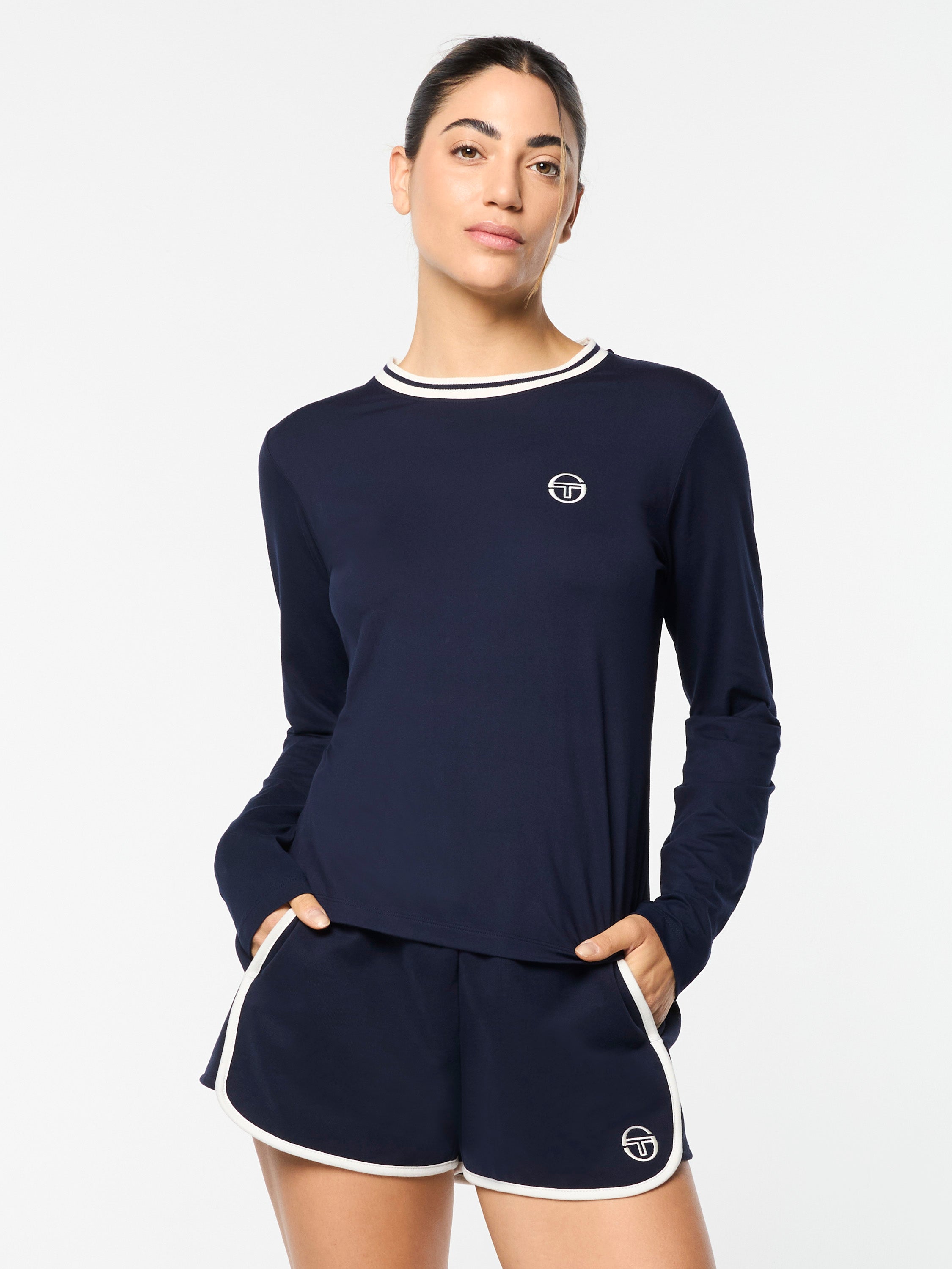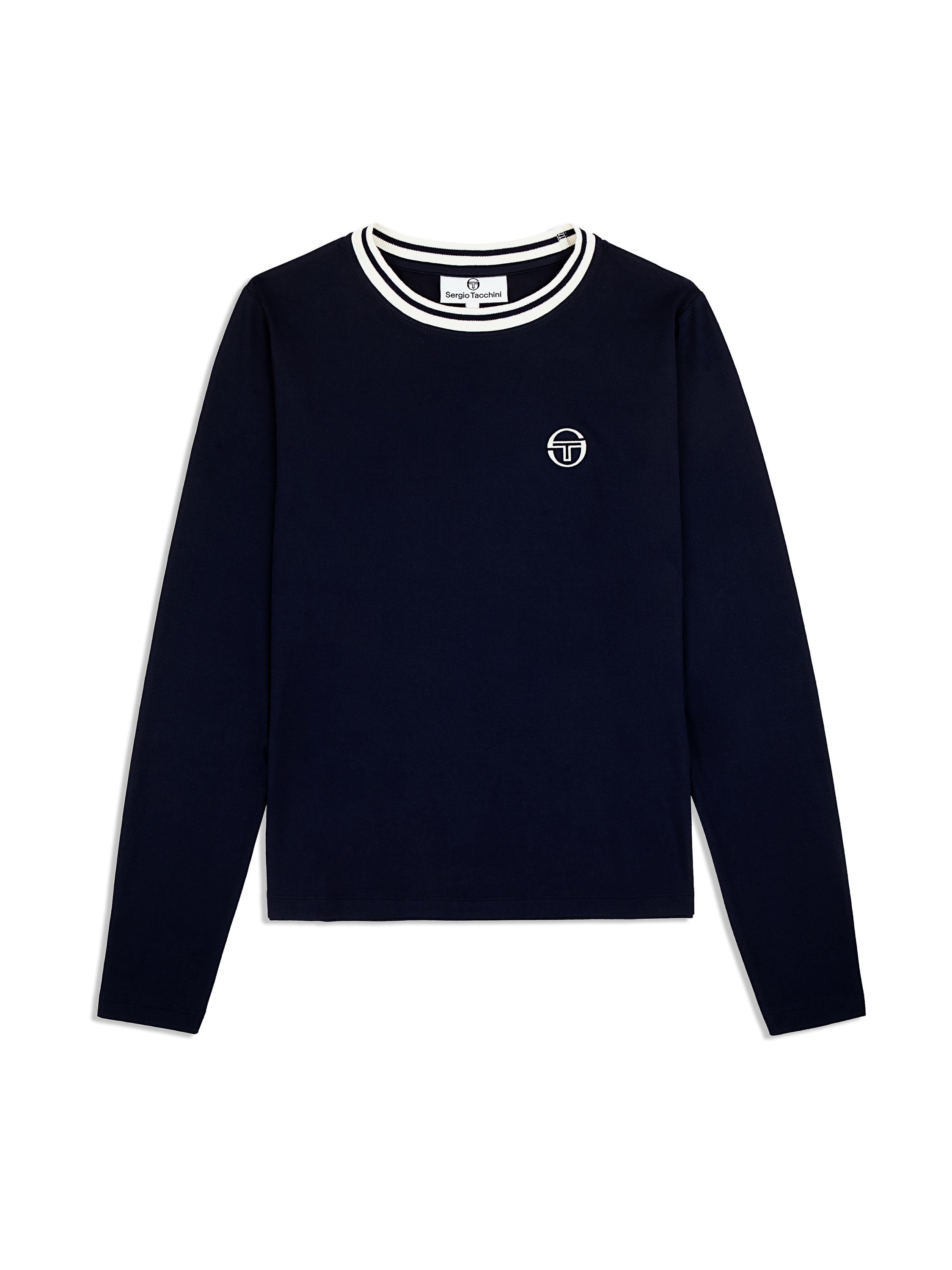 Set sail in the Marina Crew Neck, featuring a sailor-inspired rib-knit collar with maritime striping for a seaside vibe. Embodying the spirit of exploration, this super-soft long sleeve is finished with nautical-themed Sergio Tacchini compass rose artwork at the back.Pair with the Marina Short for the full fit. (Sold separately)