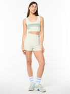 Support meets style. The Eva Sports Bra is built for movement with a sleek racerback silhouette and a comfortable elasticated chest band that keeps you locked in without holding you back. Crafted from buttery-soft stretch jersey, this performance sports bra features our iconic Damarindo double stripe across the front for a clean and classic everyday fit.