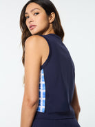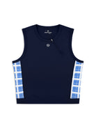 Engineered for style and performance, the Lara Cropped Top takes your on-court look to the next level. Crafted from premium court stretch fabric with moisture-wicking properties, this fitted and slightly cropped tank keeps you cool, fresh, and moving freely. Side body panels feature our custom Damarindo check pattern for a hit of heritage flair, while an angled zipper at the chest adds a modern edge.