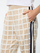 A new women's spin on a long-time Tacchini classic. The Damarindo Check Track Pant features an all-over custom jacquard check pattern derived from our iconic Damarindo double stripe for a breezy, youthful vibe. Stripe taping down the legs adds a sporty touch, while a solid rib-knit waistband completes the look.