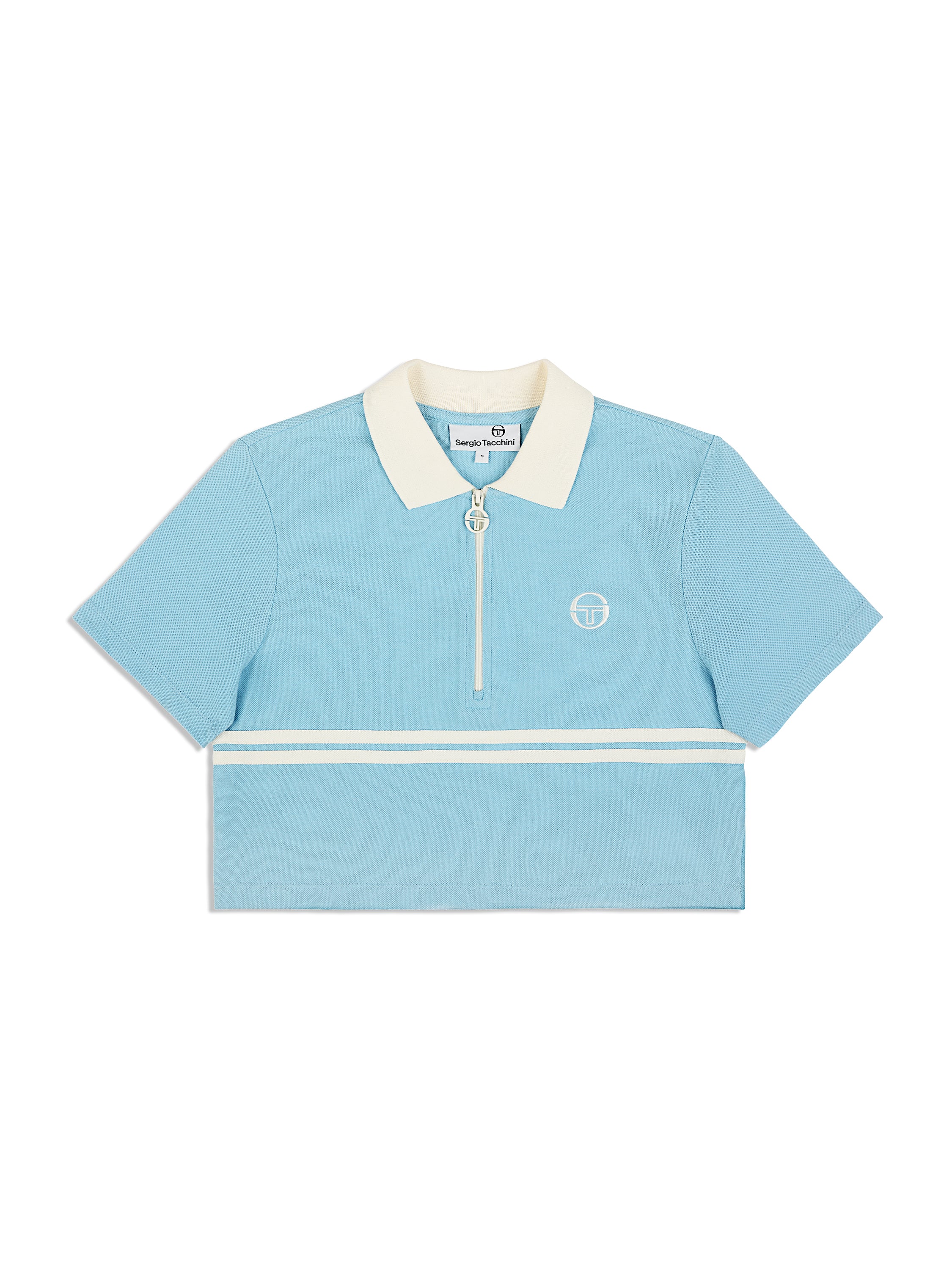 A for-her spin on a classic Tacchini silhouette, our Miss Supermac Polo is crafted from breathable piqué cotton and features double stripe taping across the chest. Topped with a soft rib-knit collar and zip placket, this cropped polo is complete with an embroidered 'ST' monogram logo at the left chest.Pair with the Miss Supermac Skirt for the full fit. (Sold separately)