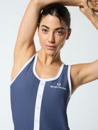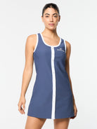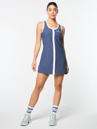 Inspired by heritage tennis design, crafted for contemporary times. Our Giulia Dress is made of buttery-soft ribbed stretch fabric that's made to move with you from practice serves to everyday outings. Featuring a contrast button placket and trims for an elevated look, this fitted tennis dress includes supportive undershorts with ball & phone pockets for convenience on the court & beyond.