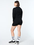 - Engineered pointelle-knit detailing at center back, cuffs, and hem