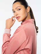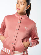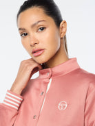 Set sail in style with our premium Sienna Track Jacket, crafted from comfortable double-knit fabric that's soft against the skin, breathable, and perfect for everyday wear. Cut with a snap-button front in a cropped fit for easy layering, this vacation-ready track jacket is complete with a mock neck and stripe accents at the trims for a nautical vibe.Pair with the Sienna Track Pant for the full fit. (Sold separately)