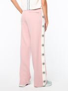 Set sail in our Women's Bussola Track Pant, crafted from a luxurious Tencel blend piqué fabric that's soft and breathable with a subtle stretch—perfect for active individuals and athleisure-wear enthusiasts alike. Featuring a nautical "Compass" rose repeat motif across contrast taping down the legs, these refined track pants offer style and comfort with a Riviera vibe.Pair with the Women's Bussola Track Jacket for the full fit. (Sold separately)