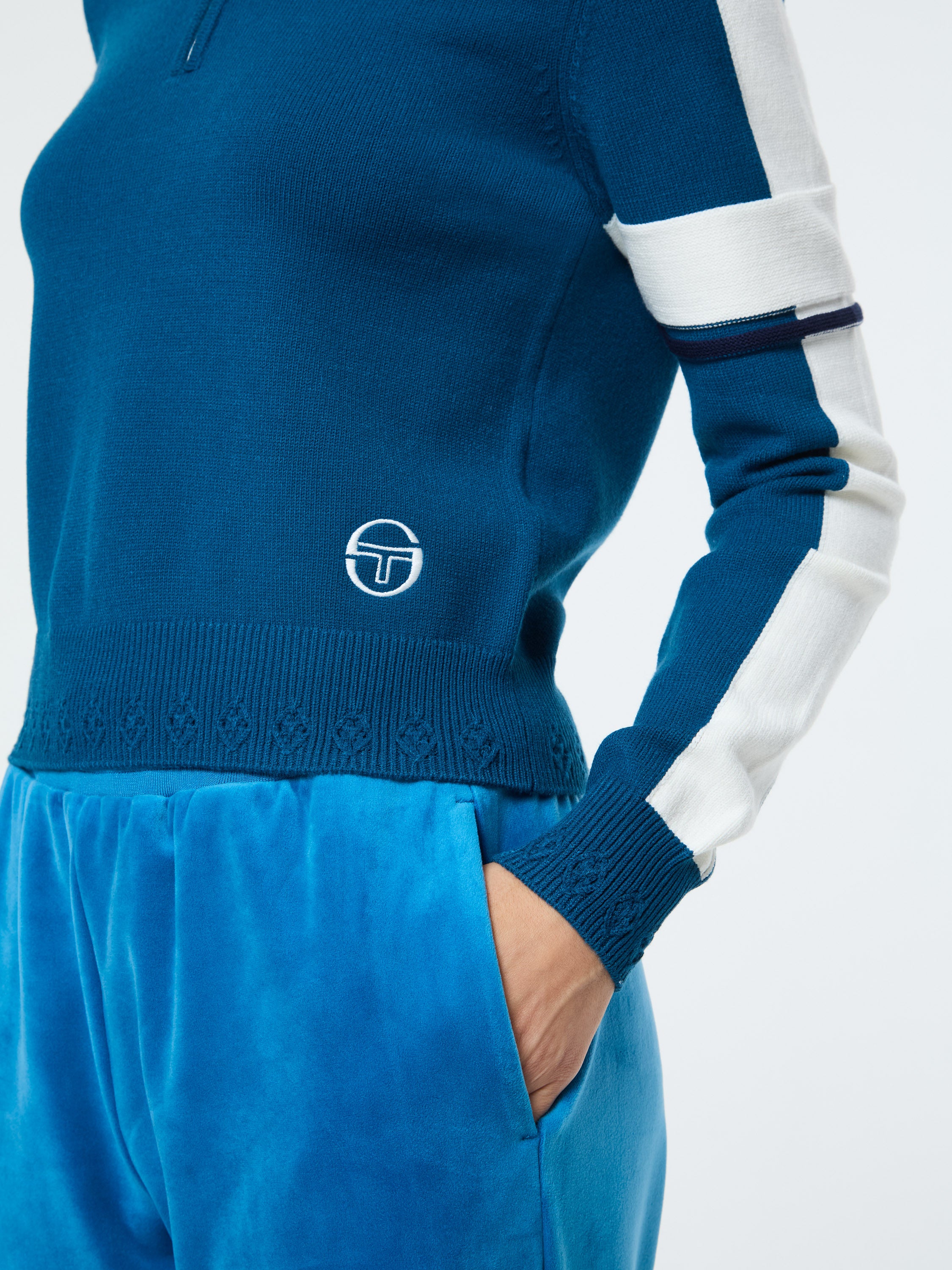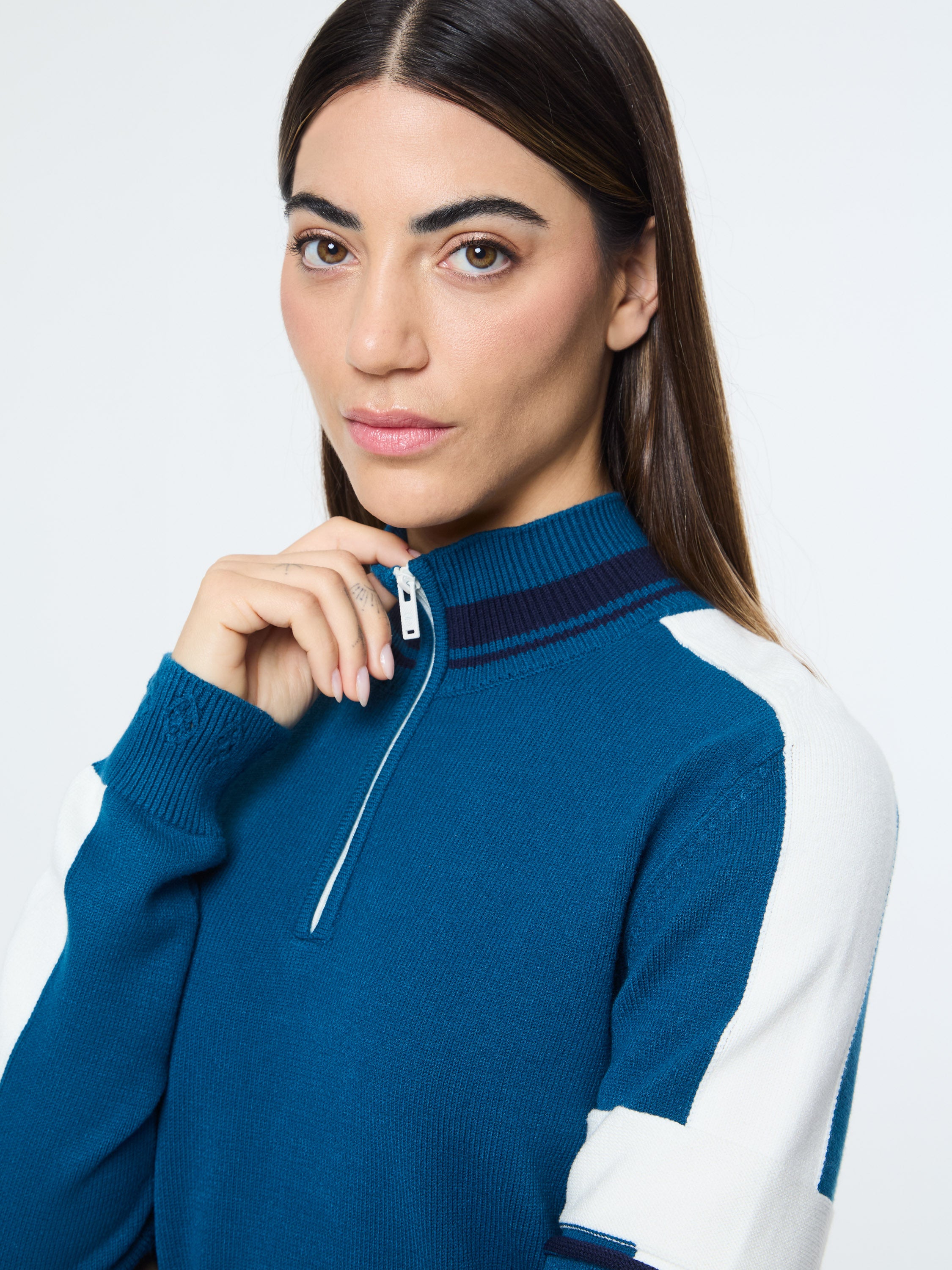 Nota Knit Quarter Zip- Mykonos Blue