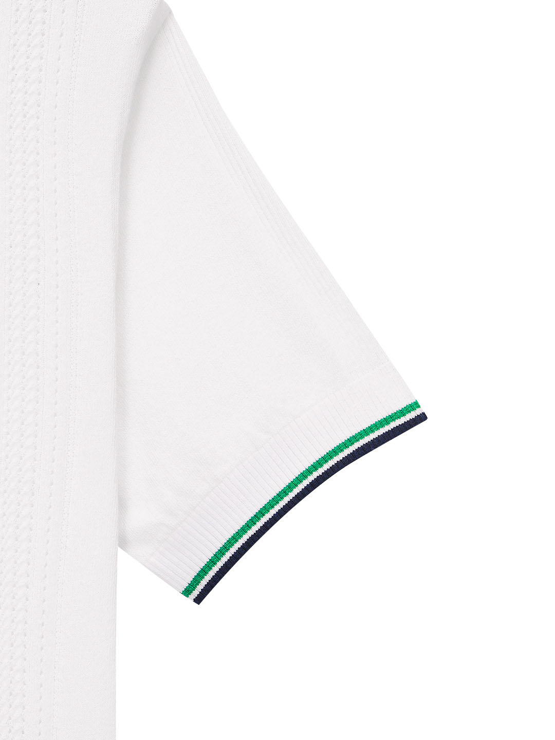 Crafted from premium viscose yarn that's exceptionally soft to the touch, our Preppy Knit Polo features elegant pointelle-knit detailing at the front for an elevated look and feel. Designed with exquisite attention to detail, this luxe polo is finished with contrast striping accents and a gathered hem for easy styling over your favorite bottoms.