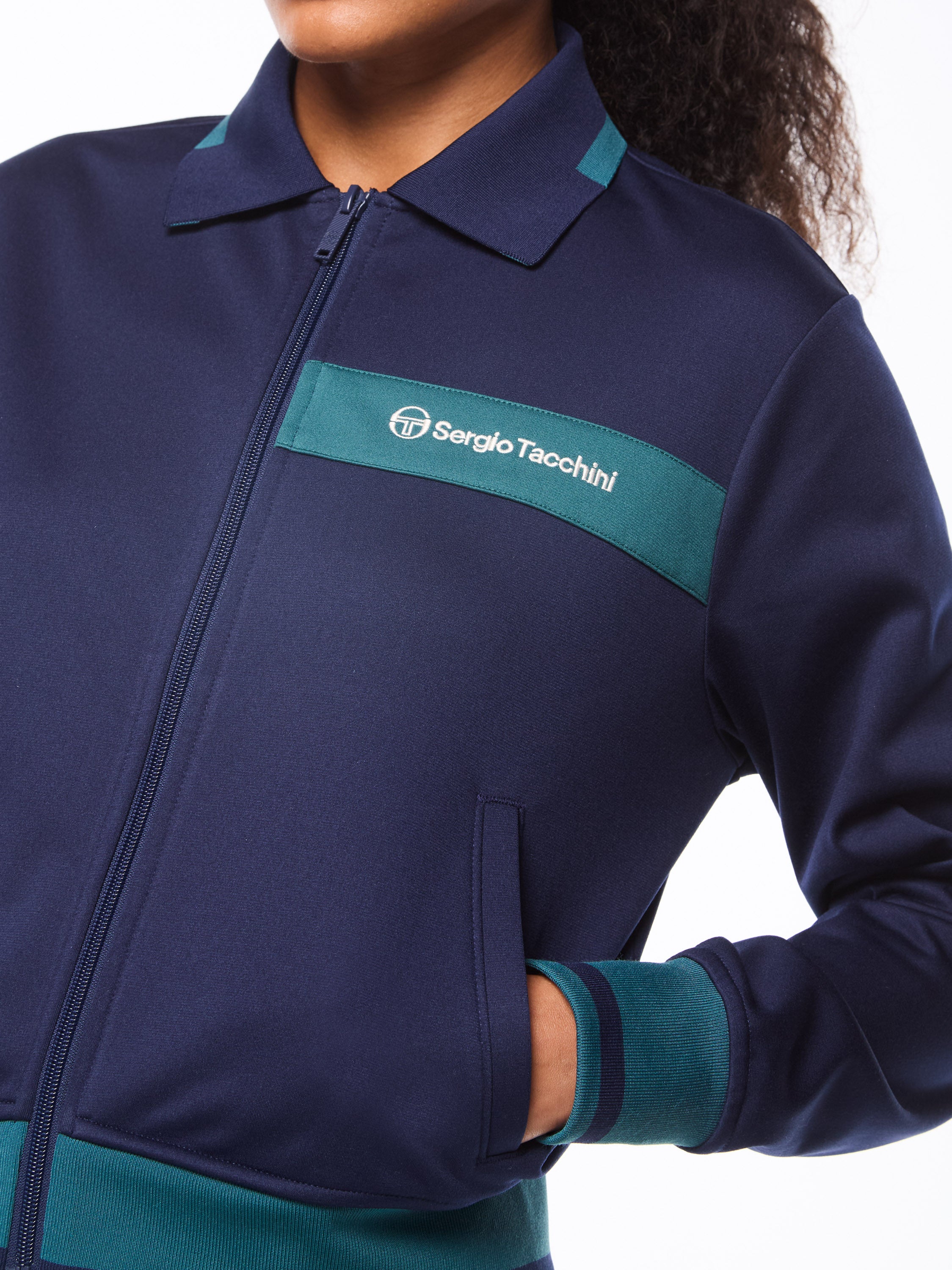 - Color block panel with embroidered Sergio Tacchini script logo at left chest