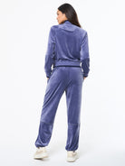 The Leta Velour Pant brings a touch of luxury to your everyday rotation. Designed in plush stretch velour that feels as good as it looks, this premium track pant flatters with a sleek silhouette, novelty piping accents, and a tipped rib-knit waistband for a sporty-chic touch. From coffee runs to nights out, it's the soft statement layer you'll keep reaching for.