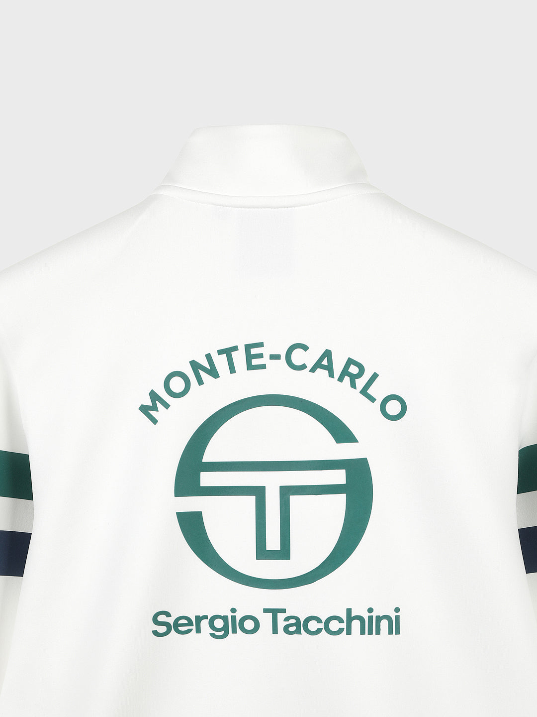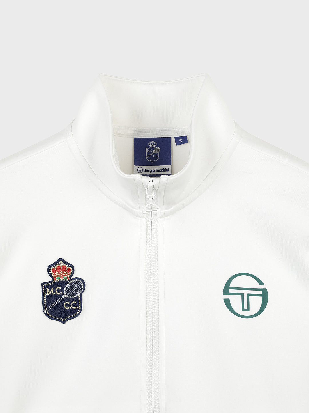 The Women's MC Staff Track Jacket is part of our dedicated collection designed for staff at the annual Rolex Monte-Carlo Masters Tournament. Featuring stripes at the sleeves, this premium full-zip track jacket is complete with Monte Carlo Country Club's prestigious crown logo at the right chest and a collaborative logo lockup at the back.