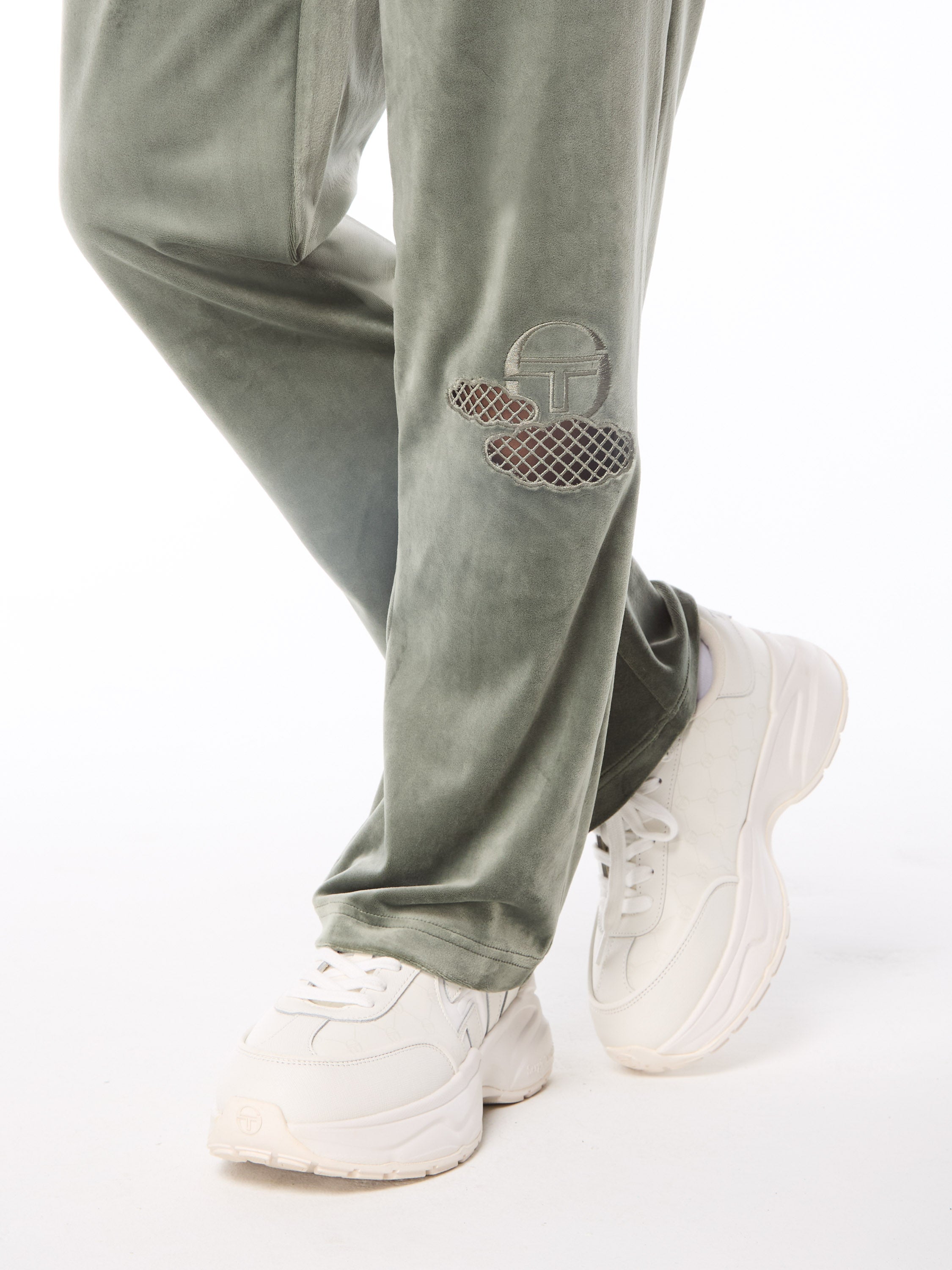 As part of our Air Travel capsule and Sergio Tacchini special 60th Anniversary edition the Nuvola Velour Track Pant is designed with our signature premium velour, it ensures comfort that stays with you wherever you go. Elevated with embroider ST logo and cloud shape details at lower left leg that nod to the tennis court net, it blends luxury, sport, and timeless styles, a true celebration of Sergio Tacchini's legacy.