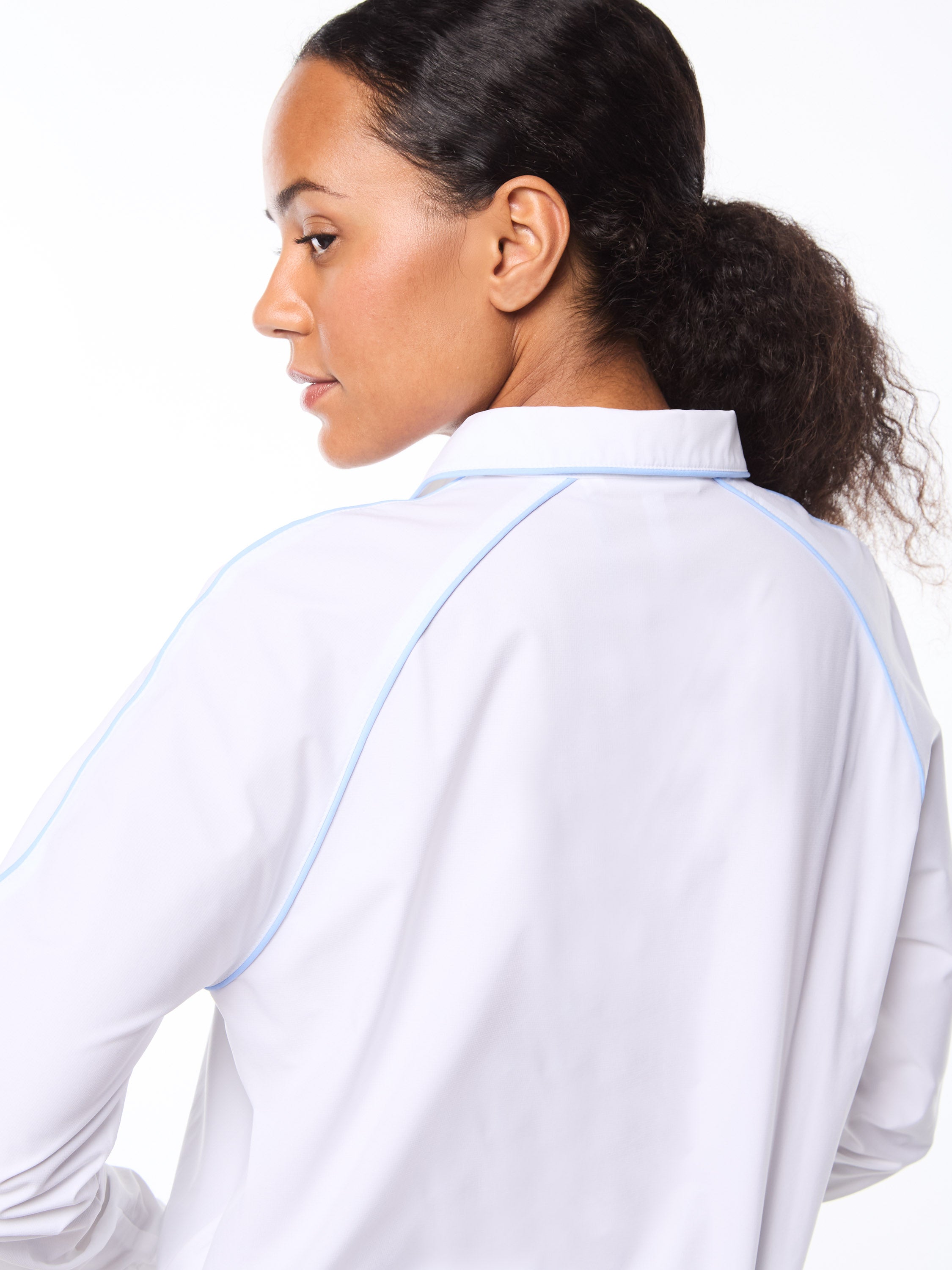 A refined on-court essential, the Doni Long Sleeve Polo blends lightweight performance with elevated style. Crafted from woven polyester for breathable comfort and easy movement, it features a classic polo collar and clean, minimal detailing—ideal on or off the court.