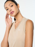 Sport-ready performance meets effortless style in the Noemi Top. Made from breathable dry-touch piqué fabric with an open lower-back panel for enhanced airflow, this athletic tank is designed to keep you cool and comfortable on and off the court. A rib-knit V-neck adds a touch of retro sport flair, while the built-in shelf bra offers extra support. Perfect for high-intensity matches or casual everyday wear, the Noemi Top delivers versatility in a sleek, easy-moving silhouette.