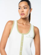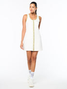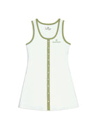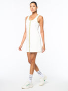 Inspired by heritage tennis design, crafted for contemporary times. Our Giulia Dress is made of buttery-soft ribbed stretch fabric that's made to move with you from practice serves to everyday outings. Featuring a contrast button placket and trims for an elevated look, this fitted tennis dress includes supportive undershorts with ball & phone pockets for convenience on the court & beyond.