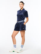 Dress it up or down—the choice is yours with the Adele Short. Crafted from super plush velour with sporty stripe accents at the rib-knit waistband, these chic shorts are perfect for light morning workouts, evening outings, and everything in between.Pair with the Adele Velour Polo for the full fit. (Sold separately)