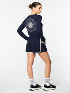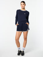Set sail in the Marina Short, crafted from super-soft French terry cotton with maritime striping at the side panels for maximum comfort with a nautical vibe. Topped with a custom-fit elastic waistband, these seaside-inspired shorts are finished with contrast binding at the rounded dolphin hem.Pair with the Marina Crew Neck & Sailor Collar Sweatshirt for the full fit. (Sold separately)