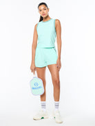 Find your flow in our super-comfy Rina Short, crafted from performance stretch piqué to keep you cool and moving freely through any workout. Featuring double pop color piping details at the pockets, these court-ready shorts are finished with a rounded dolphin hem for a retro vibe.Pair with the Rina Tank for the full fit. (Sold separately)