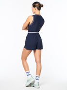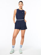Find your flow in our super-comfy Rina Short, crafted from performance stretch piqué to keep you cool and moving freely through any workout. Featuring double pop color piping details at the pockets, these court-ready shorts are finished with a rounded dolphin hem for a retro vibe.Pair with the Rina Tank for the full fit. (Sold separately)