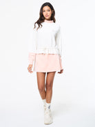 Elevated everyday easy—the Lina Velour Top is a modern staple that blends luxe texture with a sporty edge. Designed in plush stretch velour with bold color-blocking, this long-sleeve top flatters with raglan sleeves and a sleek mock neck collar. An adjustable drawcord cinch at the waist lets you customize the fit—wear it relaxed for laid-back ease or tightened for a cropped, curve-enhancing shape.
