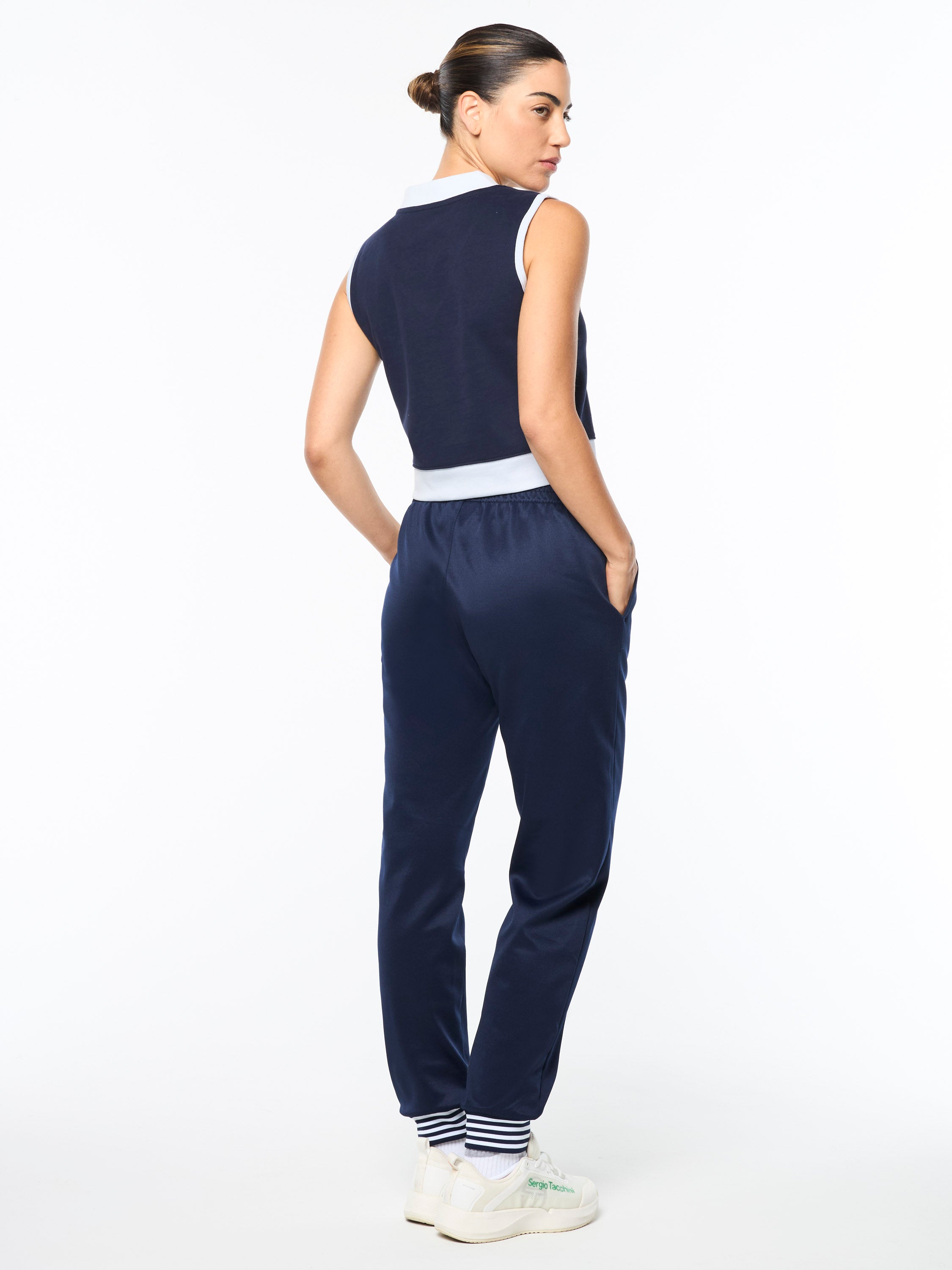 Set sail in style with our premium Sienna Track Pant, crafted from comfortable double-knit fabric that's soft against the skin, breathable, and perfect for everyday wear. Topped with a custom-fit elastic waistband, these vacation-ready track pants are complete with stripe accents at the cuffs for a nautical vibe.Pair with the Sienna Track Jacket for the full fit. (Sold separately)