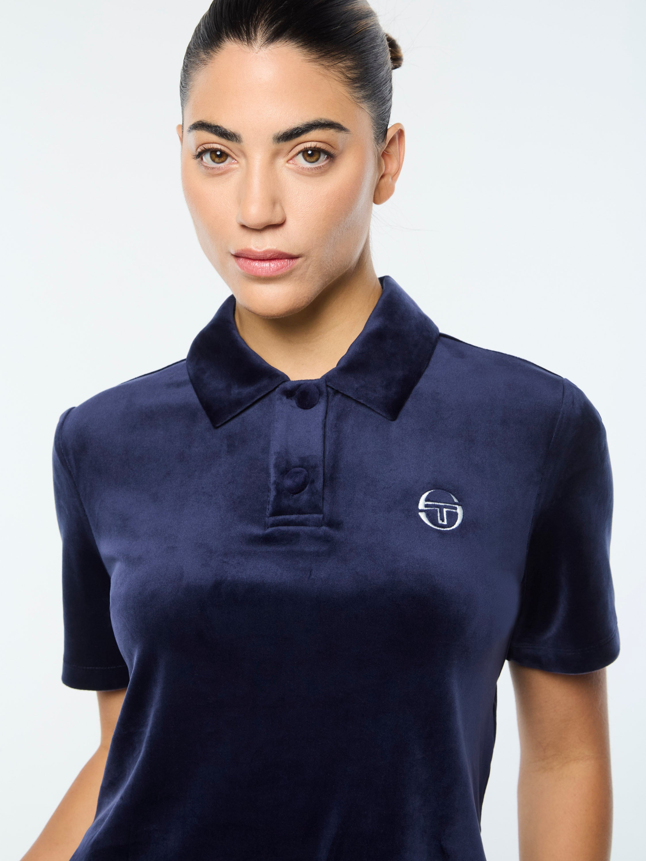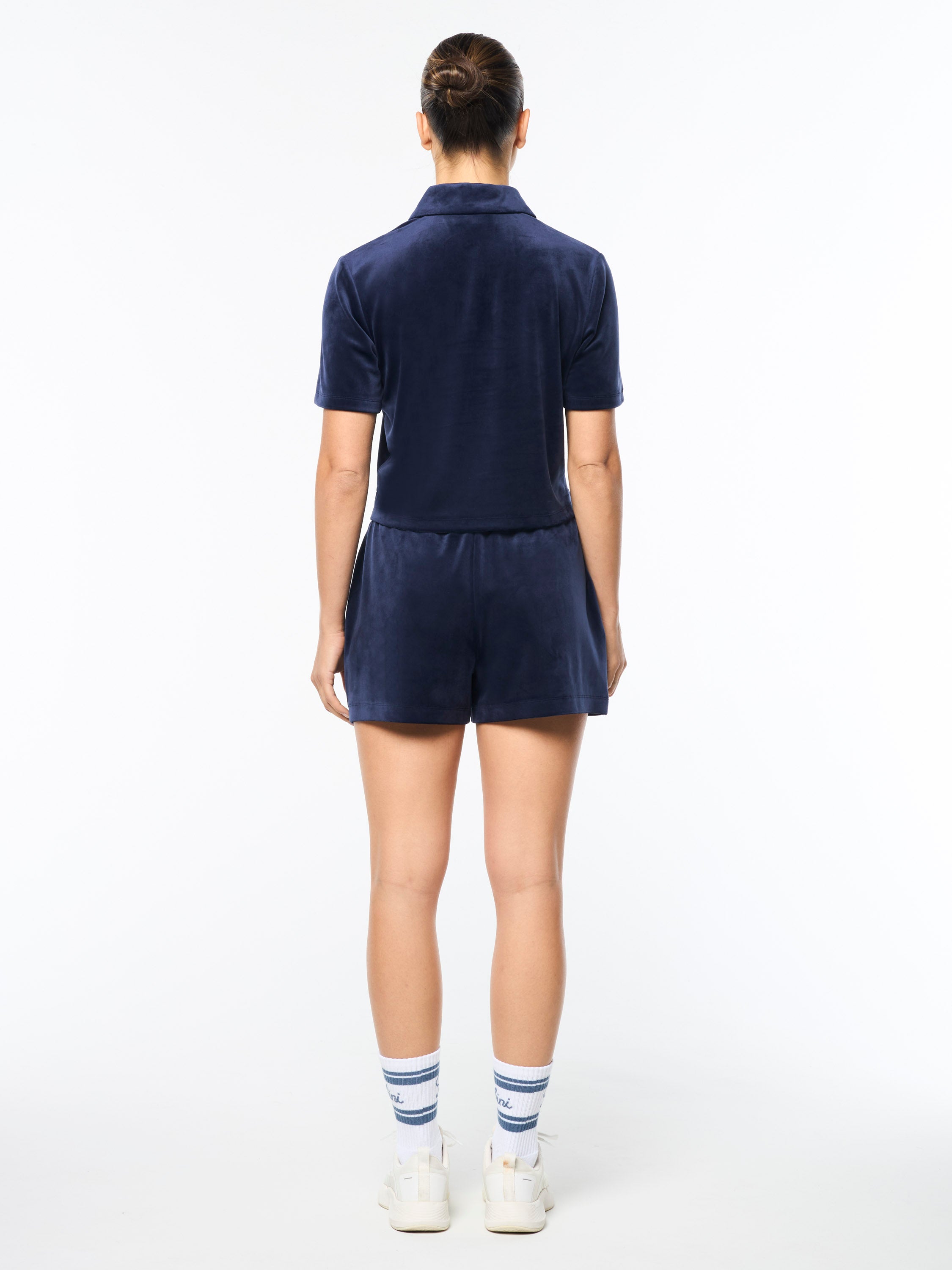 Dress it up or down—the choice is yours with the Adele Polo. Crafted from super plush velour in a loose, cropped fit for casual styling, this chic polo is perfect for morning strolls, evening outings, and everything in between.Pair with the Adele Velour Short for the full fit. (Sold separately)