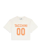 Crafted from super-soft cotton, the Amore Crop T-Shirt features varsity athletics-inspired Tacchini artwork for a contemporary take on preppy collegiate aesthetics. Finished with pintuck detailing at the sleeves, this super comfy tee is designed in a relaxed, cropped fit for easy styling.