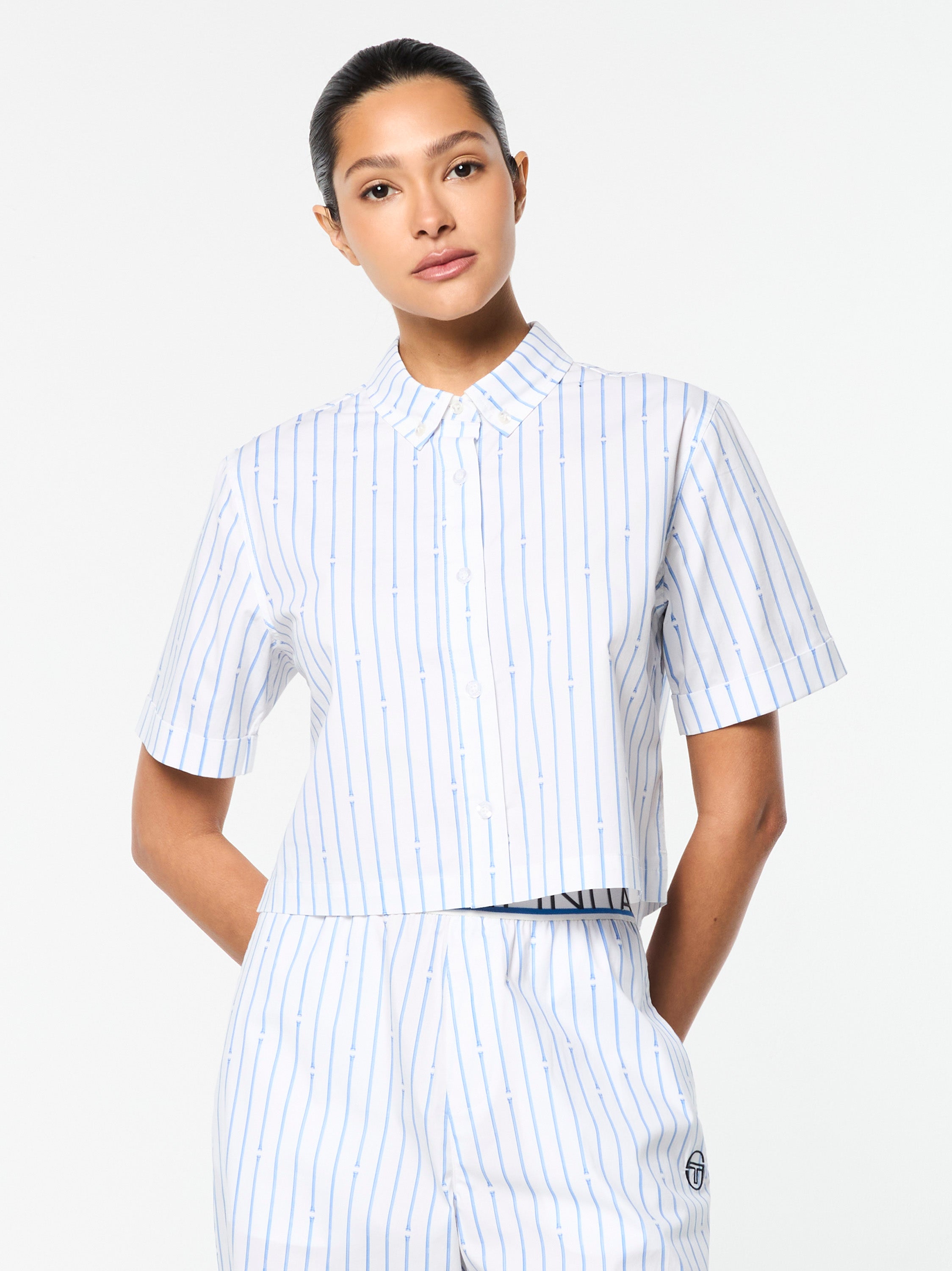 Inspired by Roman columns—a nod to Sergio Tacchini's Italian heritage.Our Women's Colonna Cropped Shirt is crafted from luxurious stretch cotton poplin featuring an all-over Roman column pinstripe print for a casual look with a touch of elegance. Topped with a clean spread collar, this cropped button-down is lightweight and breathable with a subtle stretch making it perfect for travel and warmer weather.Pair with the Women's Colonna Pant & Cropped Skirt for the full fit. (Sold separately)