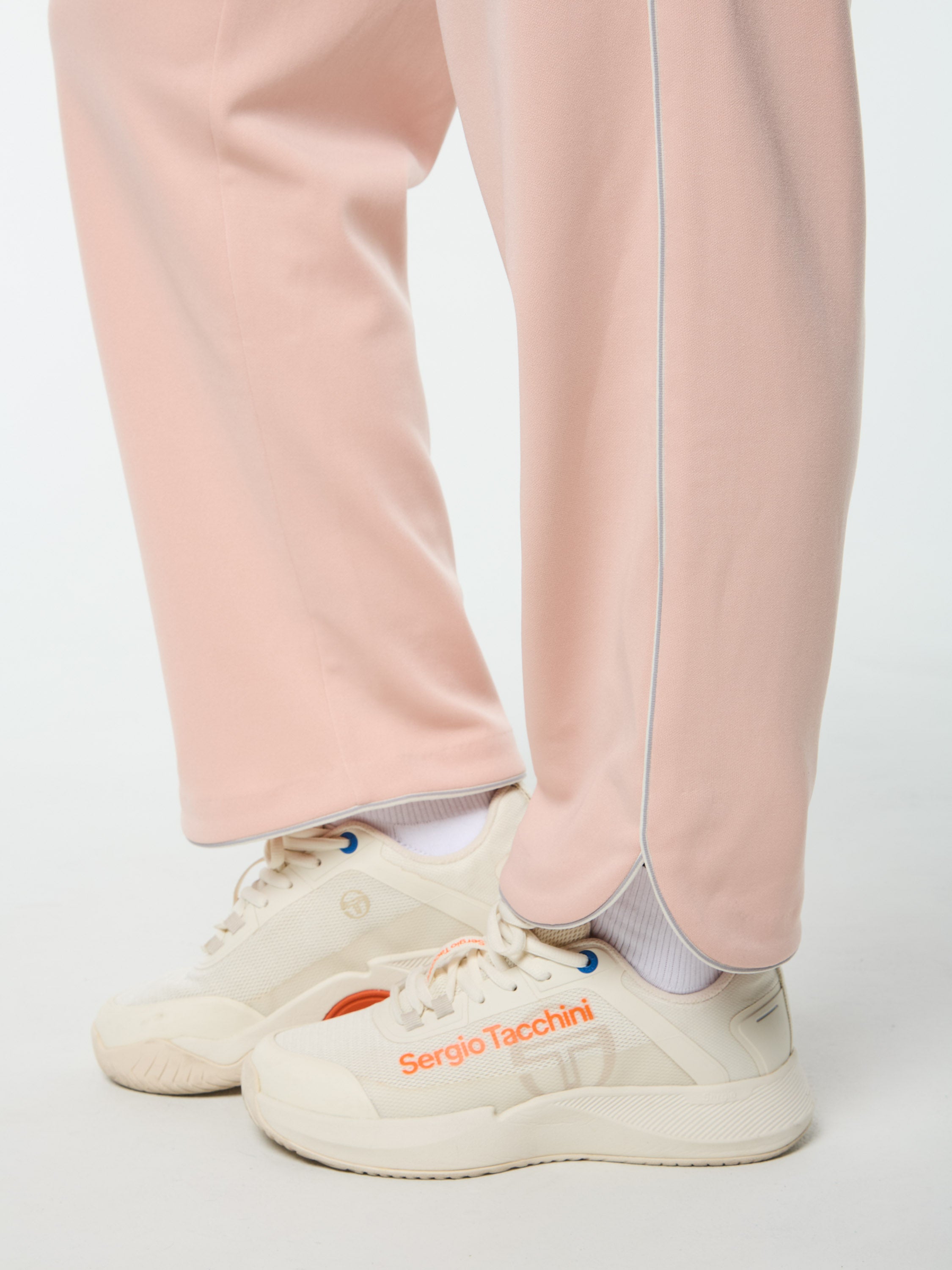 Effortlessly refined with a sporty edge, the Terina Track Pant is crafted from a luxe double-face knit fabric for a structured feel and soft finish. Designed with contrast piping accents that contour the silhouette and a curved hem at the cuffs, this elevated essential brings a feminine touch to classic athleticwear. Topped with a soft rib-knit waistband and deep pockets, these ultra comfy bottoms move with you from weekday to weekend.