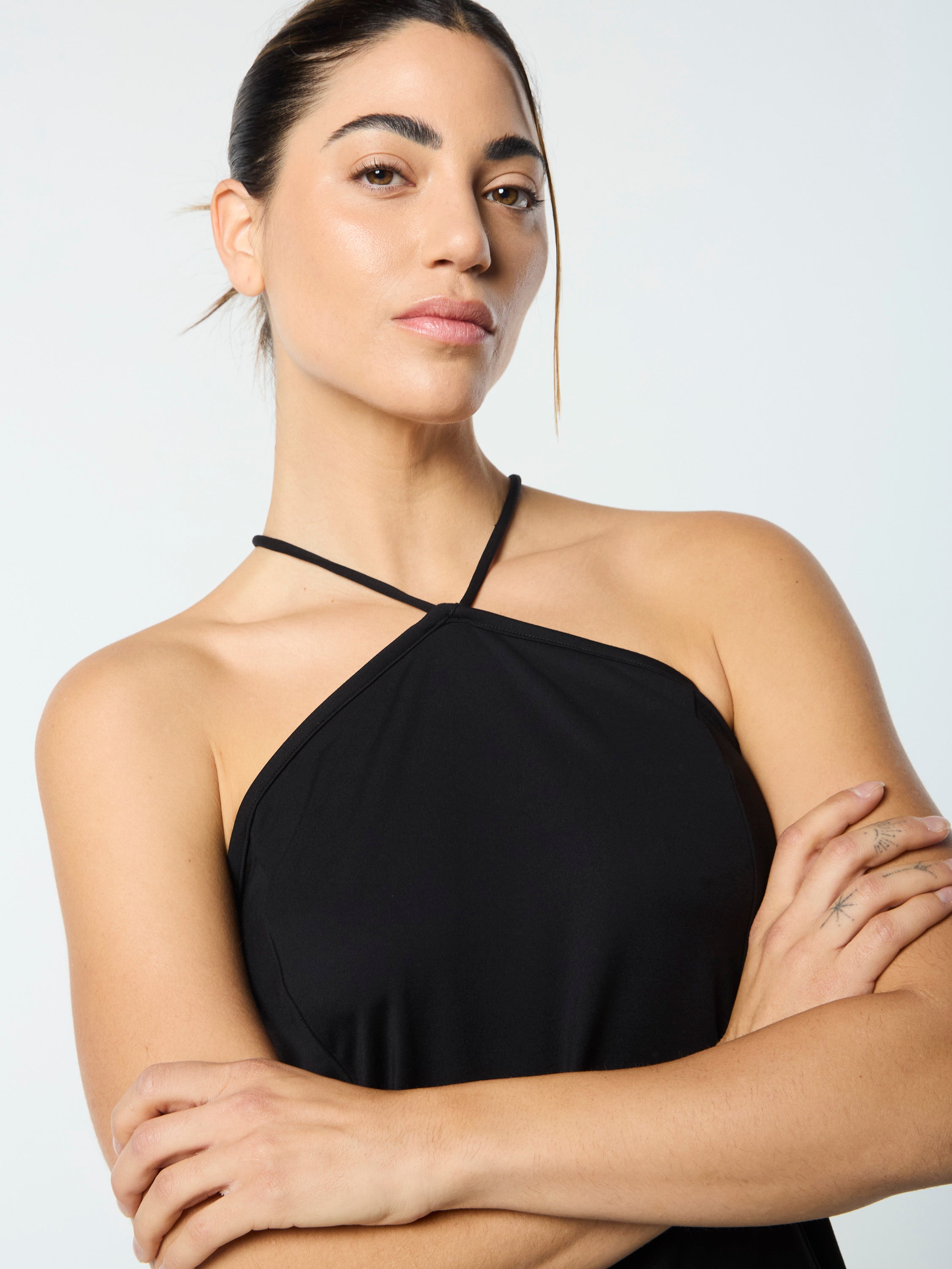 Fashion-forward and functional, our Verona Dress is crafted from buttery-soft performance stretch fabric in a flattering halter silhouette with princess seam detailing down the body. Lightweight and breathable, this elevated athleisure dress is complete with elegant adjustable straps to keep you moving freely through workouts and beyond.
