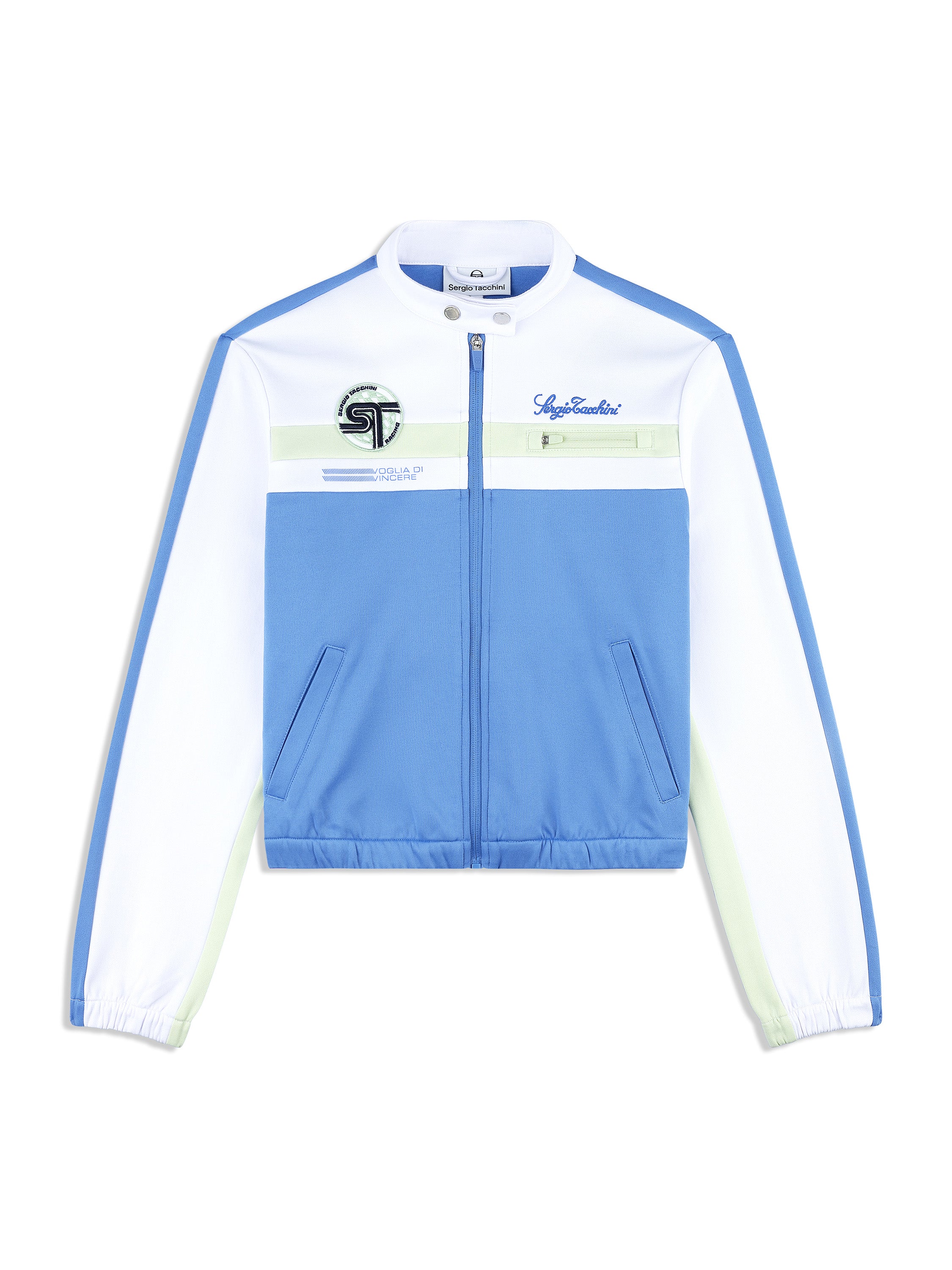 Where sport meets statement. Our Women's Corsa Track Jacket takes cues from vintage racing kits—revved up with modern edge. Crafted from soft yet structured double-face knit fabric, this premium track jacket features bold color-block paneling, a sleek snap-button stand collar, and a custom racing-inspired ST monogram "Corsa" patch.