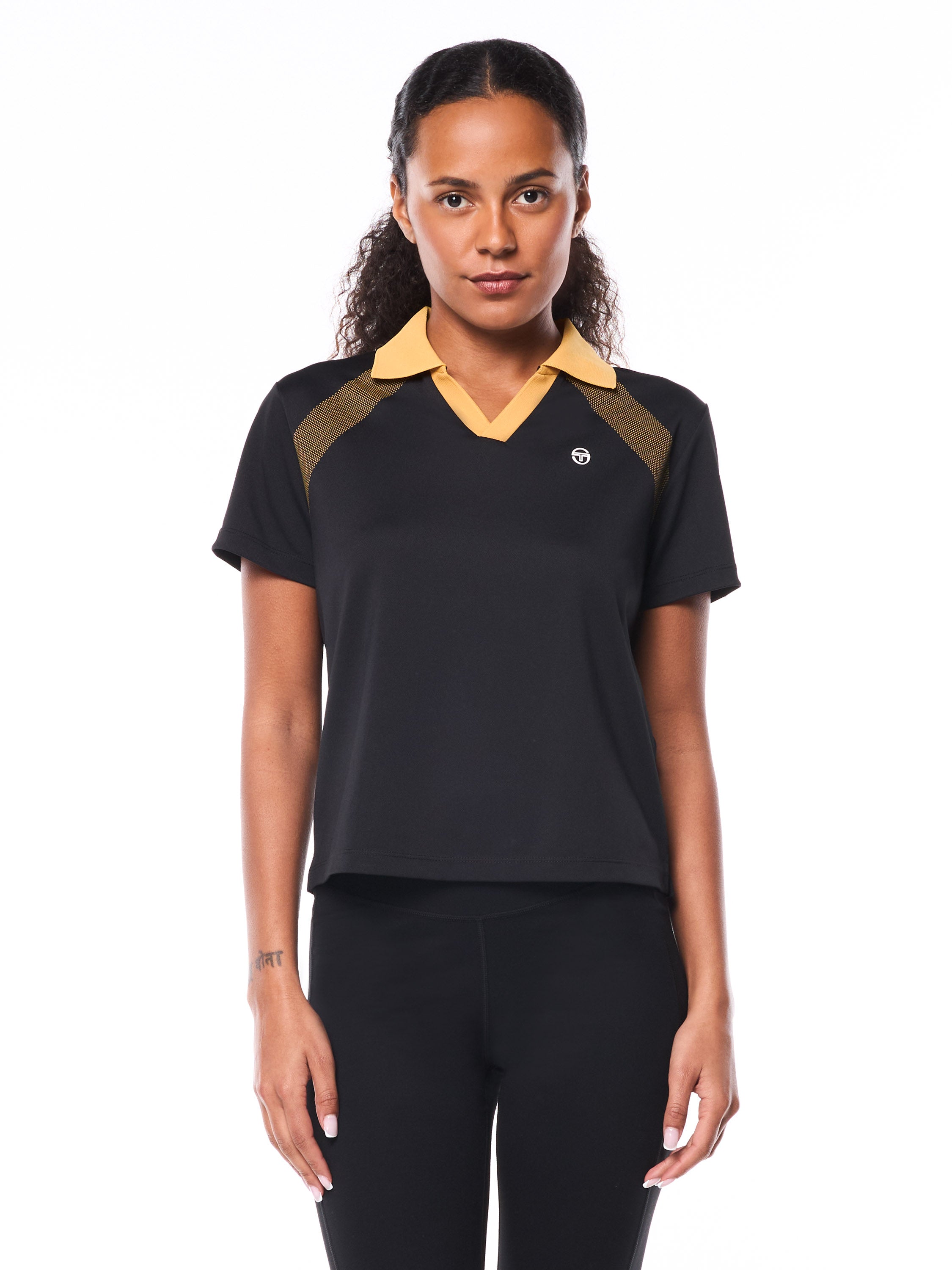 The Adelina Polo is crafted from performance PK with mesh-printed detailing, adding a refine edge. Designed with a polo-inspired silhouette, it transitions seamlessly from sport to lifestyle, blending athletic function with classic style.