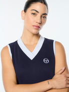 Inspired by timeless tennis elegance, our Aida Tank is crafted from incredibly soft cotton French terry to keep you comfy on the court and beyond. Topped with a rib-knit V-neck collar and pop color trims for extra style points, this sporty tank transitions seamlessly from serving aces to lunch outings.Pair with the Aida Skort for the full fit. (Sold separately)