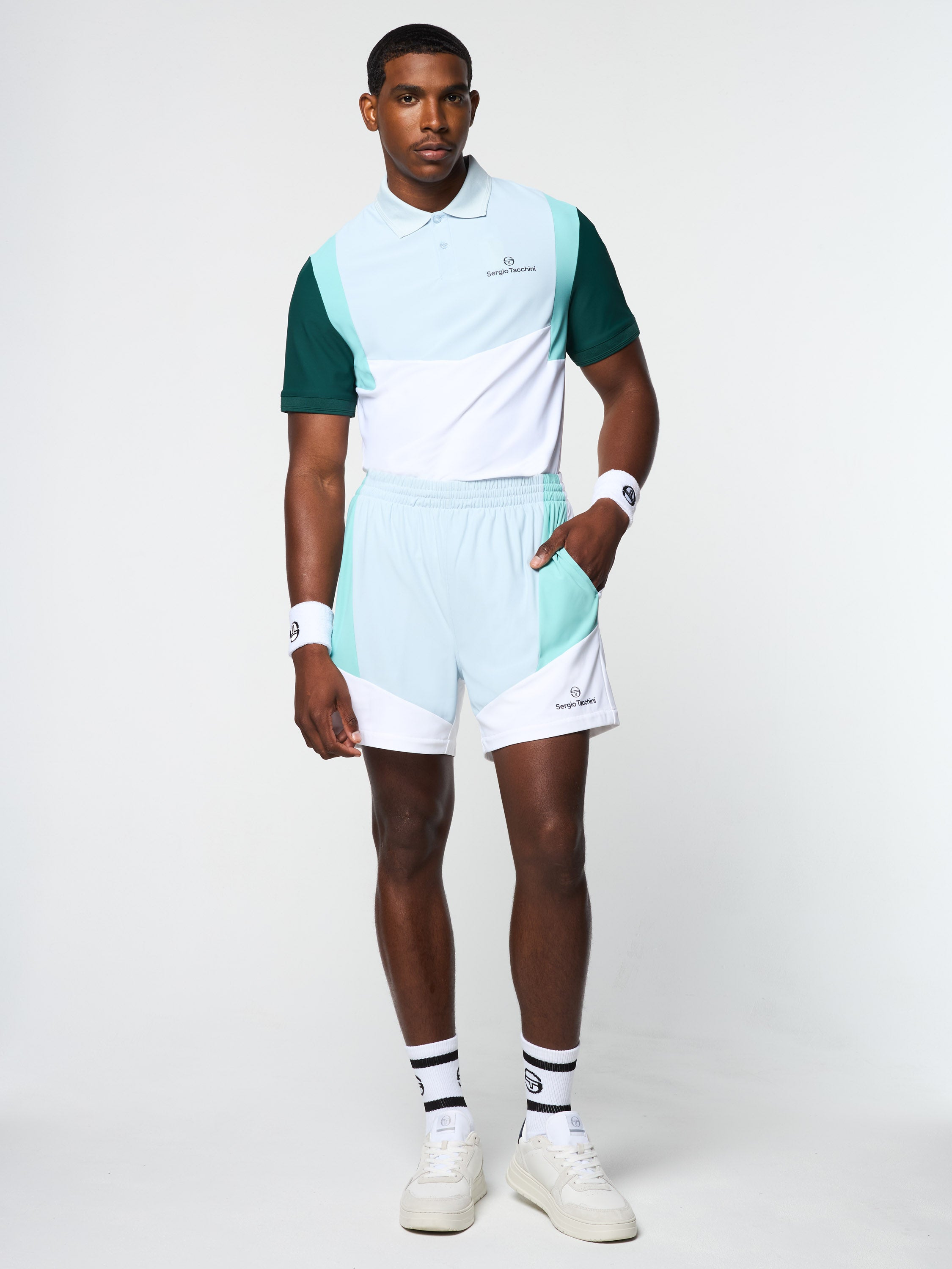 The Angolo Short is made of moisture-wicking performance piqué with a subtle stretch to keep you cool and moving freely through any workout. Perfect for on and off-court wear, these color-blocked shorts are complete with chevron seam detailing, spacious pockets for your essentials, and a Sergio Tacchini logo at the left hem.Pair with the Angolo Polo for the full fit. (Sold separately)