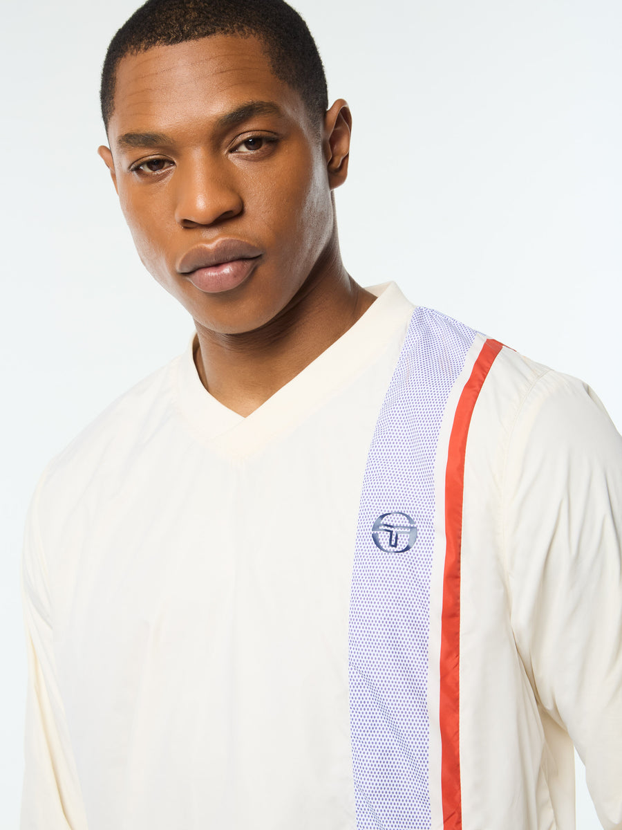 Layer up in lightweight performance. The Attivo Damarindo Crewneck is crafted from crisp nylon taffeta for a sleek, athletic look—ideal for transitional weather or training on the go. Featuring a soft rib-knit V-neck for added comfort, this easy-to-wear pullover is finished with a convenient snap-button pocket and our signature Damarindo double stripe in a bold mesh-effect print down the front.