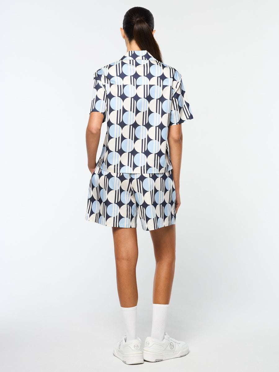 The Brikette Cabana Shirt is crafted from a luxurious Tencel-blend fabric with a satin-like finish that's exceptionally soft to the touch. Featuring an all-over retro tennis ball-inspired motif, this premium button-up is complete with a casual camp collar for an elevated take on vintage resort wear.Pair with the Brikette Cabana Short for the full fit. (Sold separately)