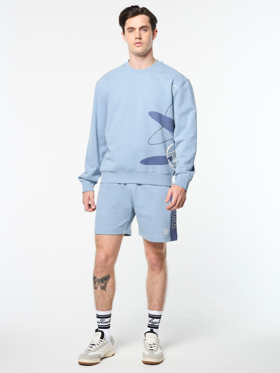 The Ciro Crewneck Sweatshirt is crafted from super-soft French terry cotton for maximum comfort with an elevated vibe. Featuring custom Sergio Tacchini artwork in a mixed media print with gloss detailing, this premium crewneck is finished with a rubberized Tacchini varsity logo at the rear neck.Pair with the Ciro Short for the full fit. (Sold separately)